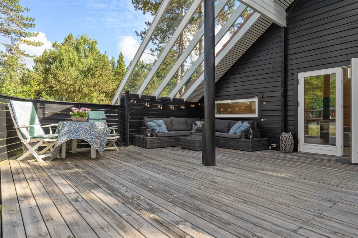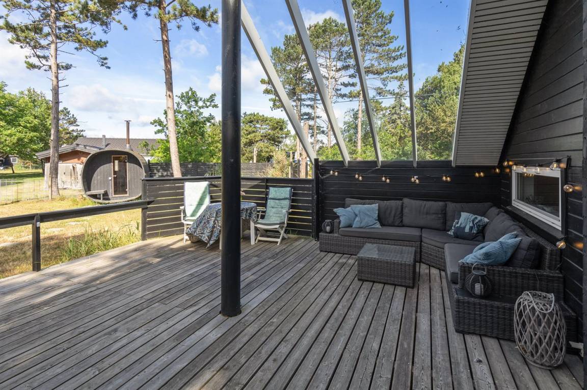 DraußenDie Ferienunterkunft liegt auf einem 1240 m² großen Naturgrundstück. Die Entfernung zum Meer beträgt 200 m. Die nächste Einkaufsmöglichkeit liegt 2500 m entfernt. In einem Abstand von 23000 m gibt es einen Golfplatz. Es steht ein 20 m² Terrassenareal zur Verfügung. Außerdem gibt es 15 m² überdachte Terrasse. Außensauna. Außendusche. Parkplatz auf dem Grundstück.