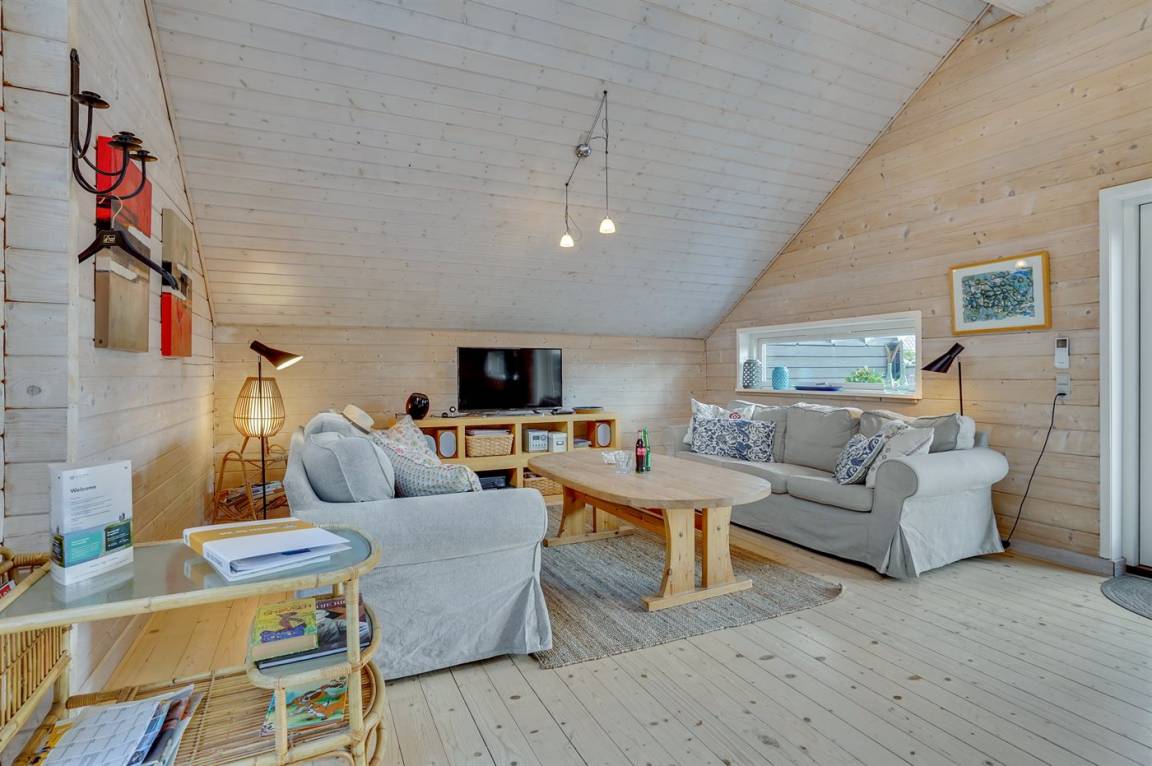 „Prior to the vacation at the holiday home: Plantegningen er ikke helt retvisende, og vi kunne ikke regne ud hvordan man kom op til hemsen før ankomst. det er en lille detalje, men hvis man rejser med to små børn som klatrer op ad alt man ikke forhindrer dem i, kan det være ret relevant at have en fyldestgørende plantegning når man vælger sommerhus. The local office: Halvdelen af komfurets kogeplader virkede ikke, men bureauet var rigtig hjælpsomme til at få det fixet. Håndværkerne der skulle lave det kom 2 timer efter aftalt tid, men det er jo ikke bureauets skyld. Cleanliness: Rengøringen før vores ankomst var altså for god ordens skyld ikke utilfredsstillende. Der var rent og ingen nullermænd, men i løbet af ugen fandt vi fx konfetti under et løst gulvtæppe og under sofaerne, samt oppustede balloner og tomme vandflasker under den ene seng. Der var ikke beskidt, rengøringen var tydeligvis bare ikke grundig nok til at støvsuge. The holiday home itself: Der var dejligt. Det er et smukt hus og det er dejlig indrettet.“