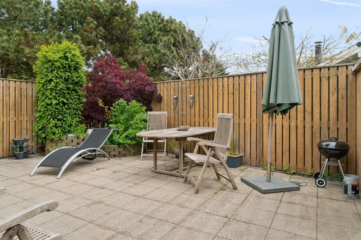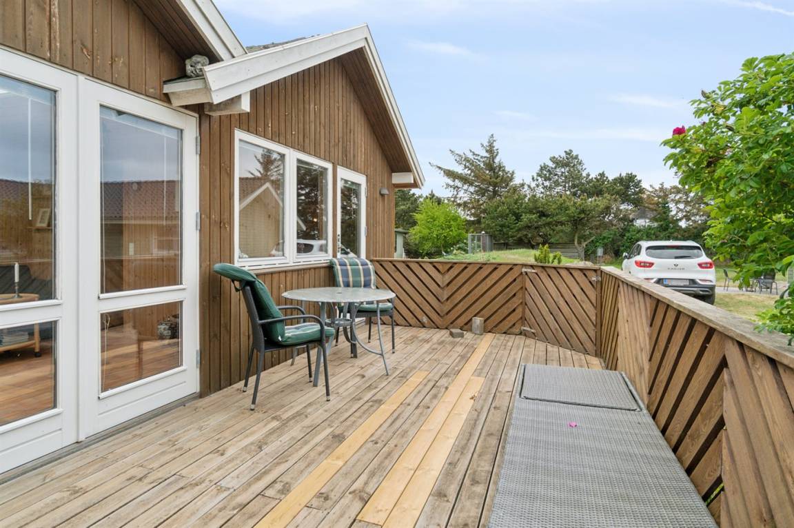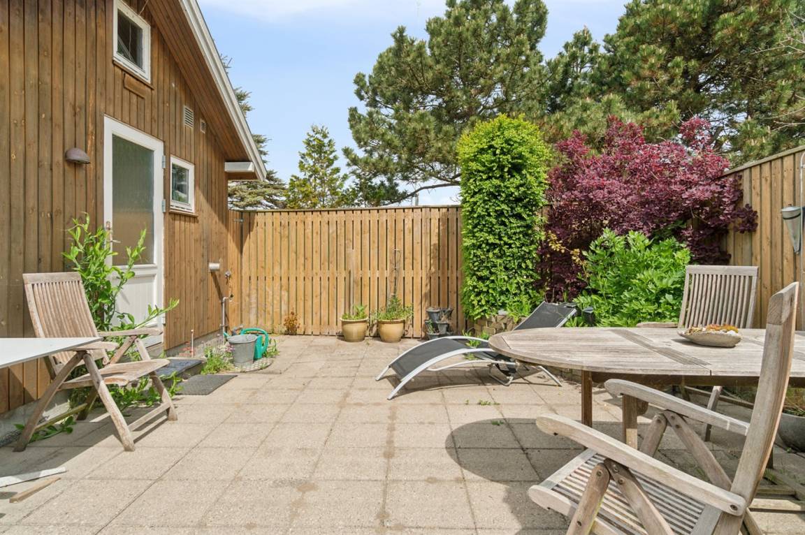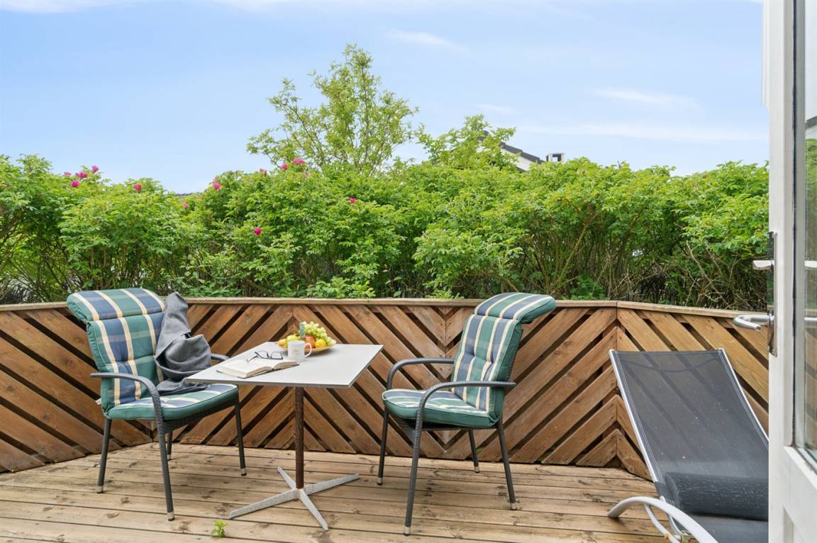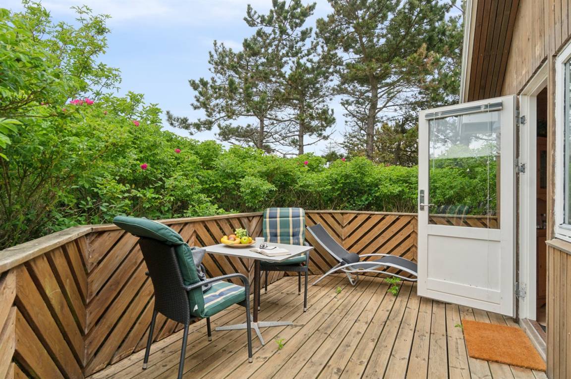 Im Osten befindet sich ein geschlossener Terrassenbereich, in dem du gut windgeschützt sitzen kannst.