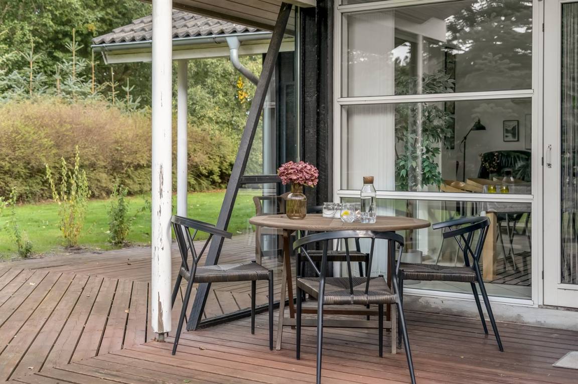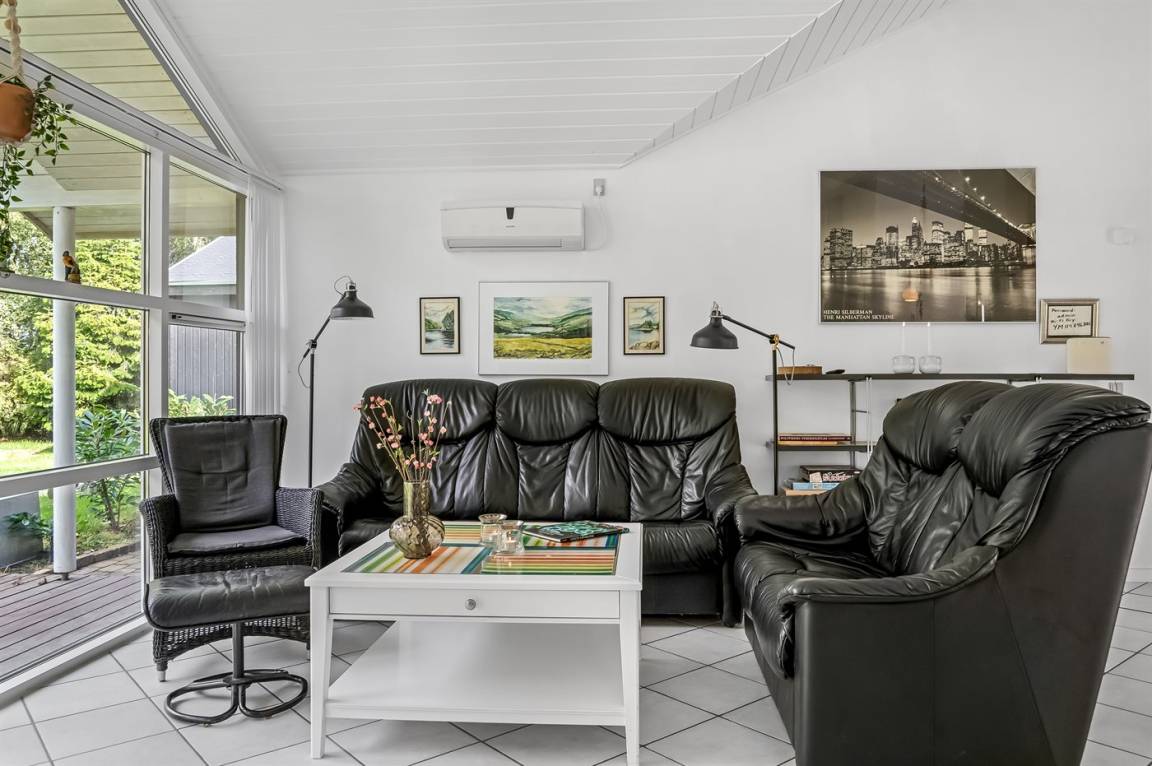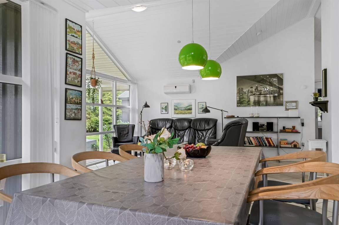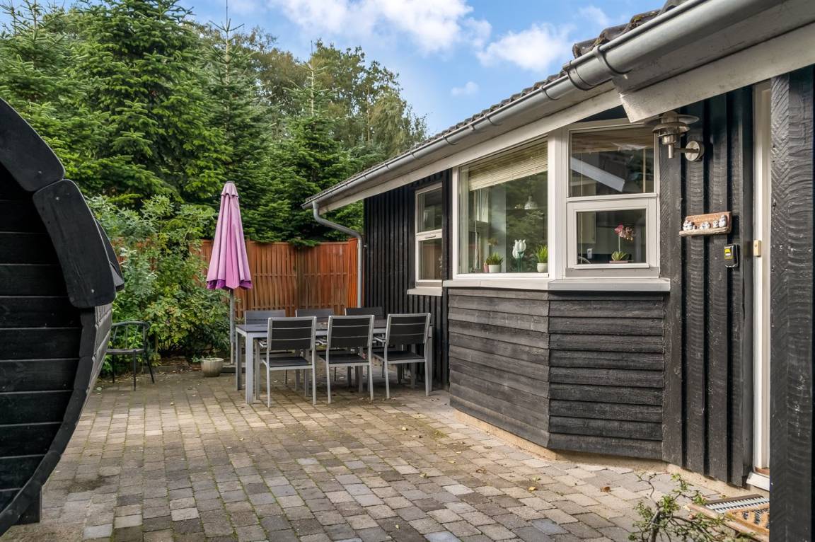 DraußenDie Ferienunterkunft liegt auf einem 1576 m² großen Gartengrundstück. Die Entfernung zum Meer beträgt 1600 m. Die Entfernung zum Fjord beträgt 850 m. Die nächste Einkaufsmöglichkeit liegt 750 m entfernt. In einem Abstand von 4200 m gibt es einen Golfplatz. Es steht ein geschlossenes Terrassenareal zur Verfügung - davon sind 15 m² überdacht. Schaukel. Windschutzhütte.Es beteht die Möglichkeit das Essen in der Außenküche zuzubereiten. Parkplatz auf dem Grundstück.