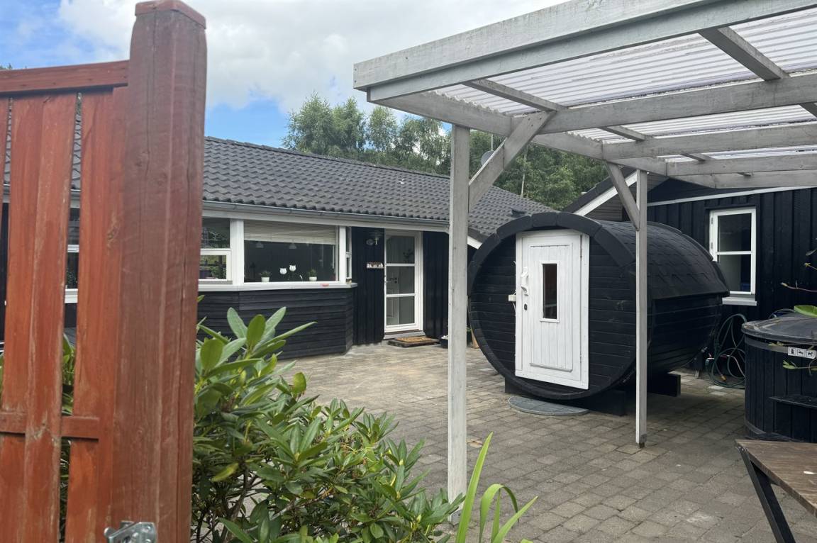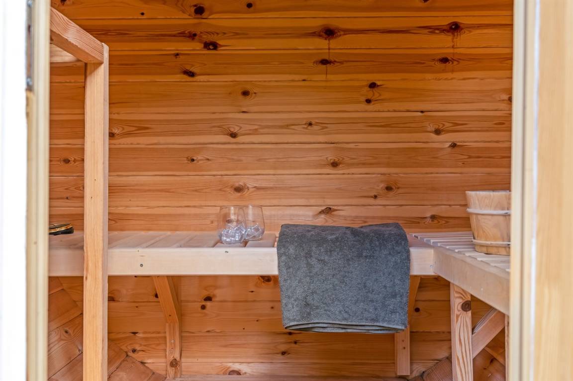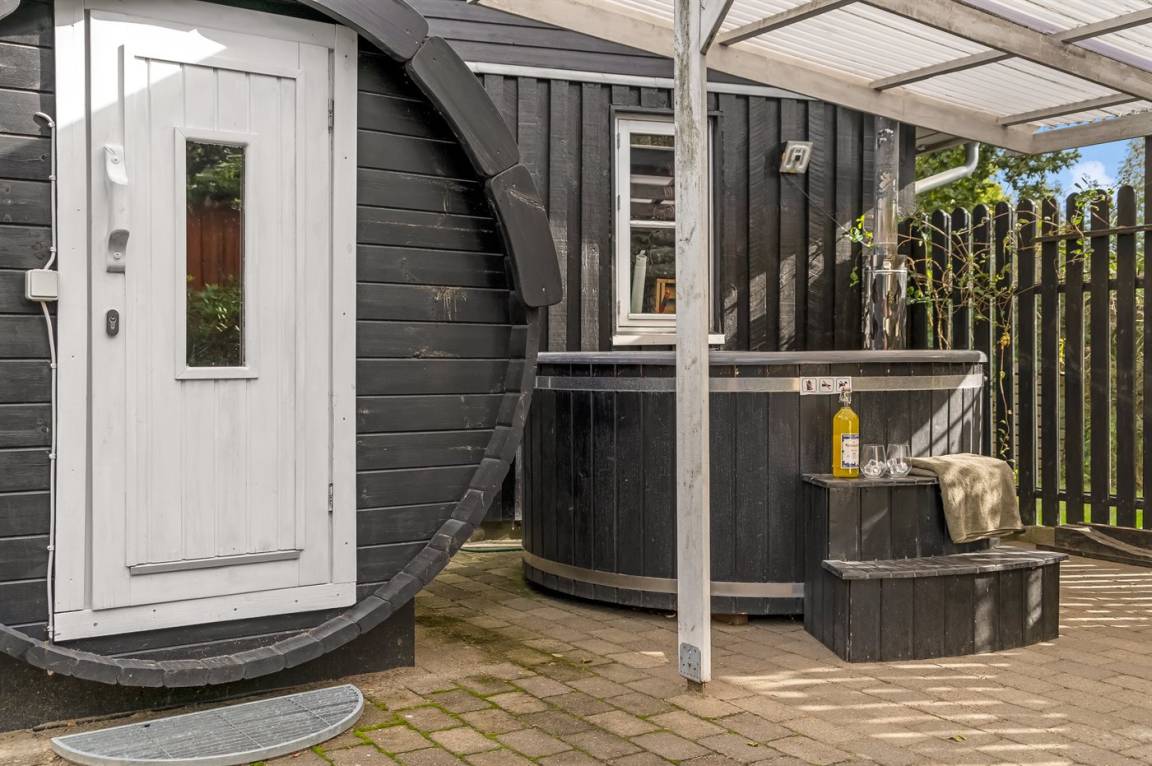 Im Innenhof zwischen dem Haus und dem Aktivitätsraum befinden sich eine Saunatonne und ein großes, luxuriöses Hot Tub für 6 Personen. Diese herrlichen Außenanlagen laden zu vielen Stunden Entspannung und Wohlbefinden zu jeder Jahreszeit ein. Versuche an einem abend unter freiem Himmel im warmen Wasser zu sitzen und ein kühles Getränk zu genießen.