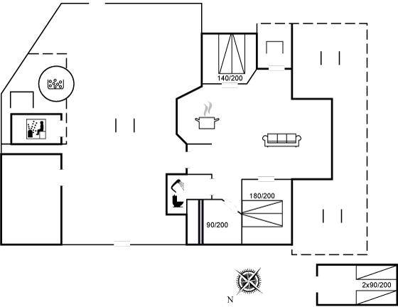 SchlafverhältnisseDie Schlafplätze verteilen sich auf 4 Schlafräume. 4 Schlafplätze in Doppelbetten. 2 Schlafplätze in Einzelbetten. 2 Schlafplätze in einem Etagenbett. 2 von diesen Schlafplätzen befinden sich im Gästehaus.