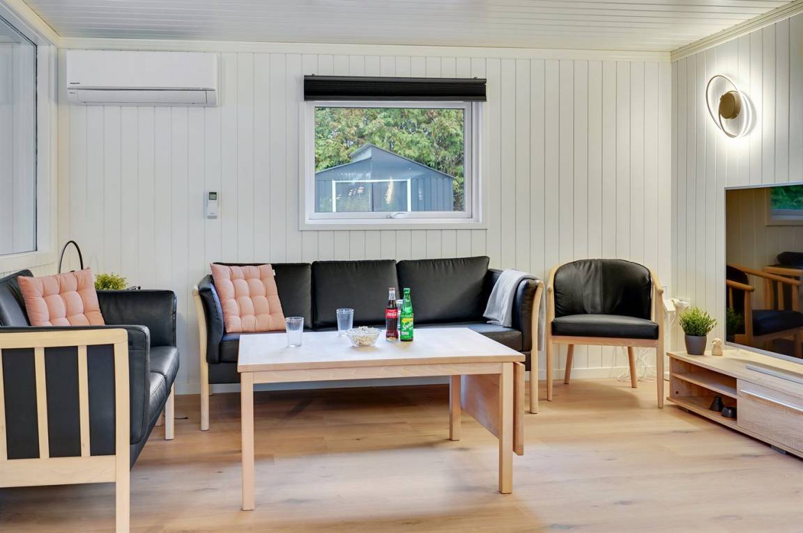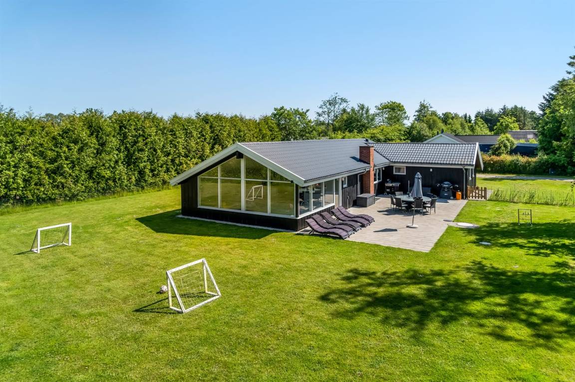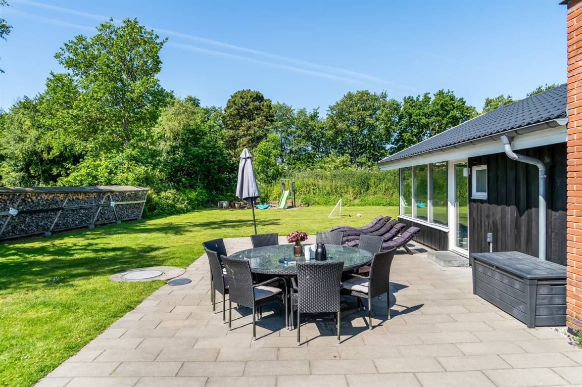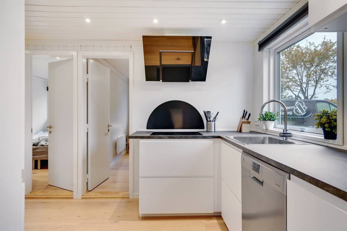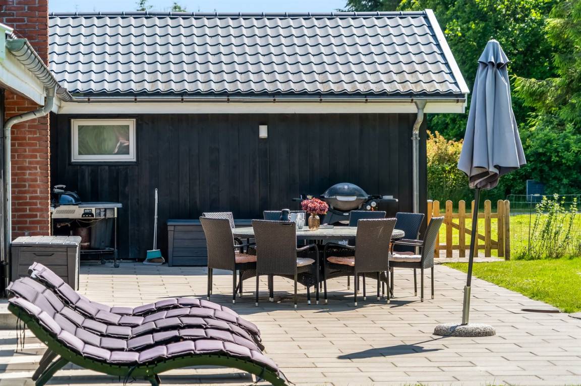 DraußenDie Ferienunterkunft liegt auf einem 1500 m² großen Gartengrundstück. Das Grundstück ist eingezäunt. Die Entfernung zum Meer beträgt 1300 m. Die Entfernung zum Fjord beträgt 700 m. Die nächste Einkaufsmöglichkeit liegt 650 m entfernt. Es steht ein 100 m² Terrassenareal zur Verfügung. Geräteraum. Sandkasten. Fußballtor.Lagerfeuerstelle. Es steht ein Grill zur Verfügung. Es ist ein Ladestecker für Elektroautos installiert. Parkplatz auf dem Grundstück.