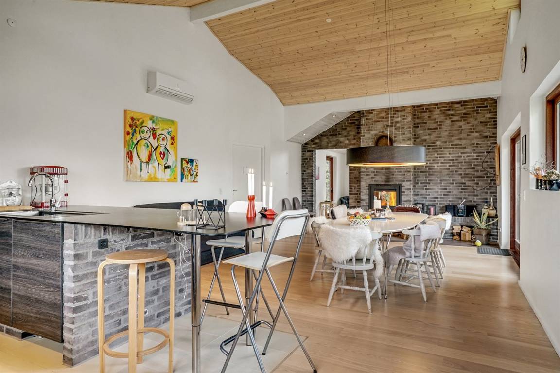 DraußenDie Ferienunterkunft liegt auf einem 1204 m² großen Gartengrundstück. Die Entfernung zum Meer beträgt 1500 m. Die Entfernung zum Fjord beträgt 550 m. Die nächste Einkaufsmöglichkeit liegt 750 m entfernt. Es steht ein 100 m² Terrassenareal zur Verfügung. Außerdem gibt es 20 m² überdachte Terrasse.Lagerfeuerstelle. Es steht ein Grill zur Verfügung. Es ist ein Ladestecker für Elektroautos installiert. Ladestecker Typ 2. Mit einer Ladeleistung von 11 kW. Parkplatz auf dem Grundstück.