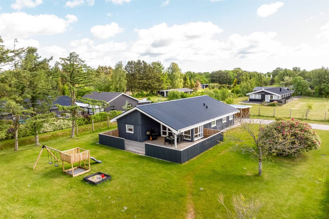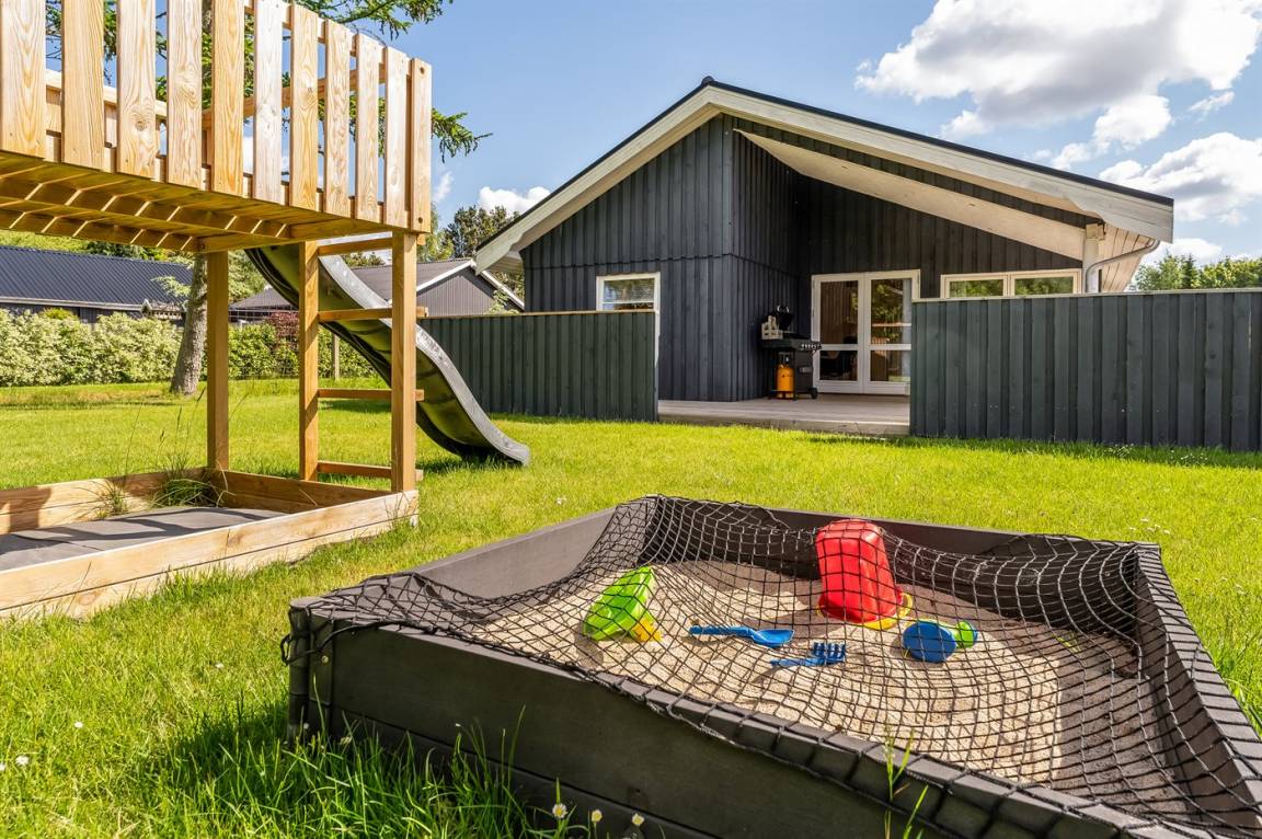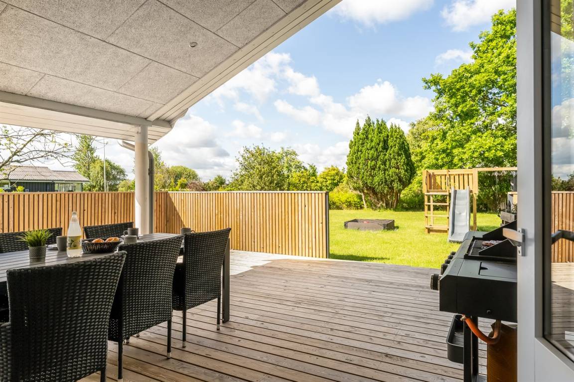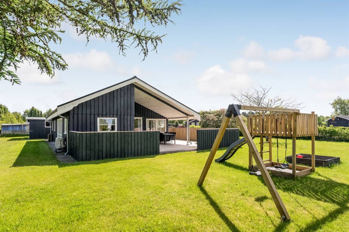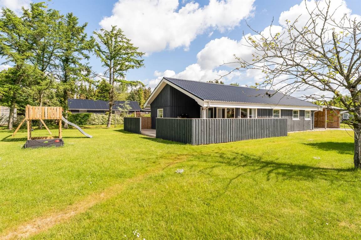 DraußenDie Ferienunterkunft liegt auf einem 1200 m² großen Gartengrundstück. Die Entfernung zum Meer beträgt 850 m. Die Entfernung zum Fjord beträgt 740 m. Die nächste Einkaufsmöglichkeit liegt 140 m entfernt. In einem Abstand von 3380 m gibt es einen Golfplatz. Es steht ein offenes Terrassenareal zur Verfügung. Außerdem gibt es überdachte Terrasse. Schaukel. Sandkasten. Rutsche. Es steht ein Grill zur Verfügung. Es ist ein Ladestecker für Elektroautos installiert. Ladestecker Typ 2. Mit einer Ladeleistung von 11 kW. Parkplatz auf dem Grundstück.