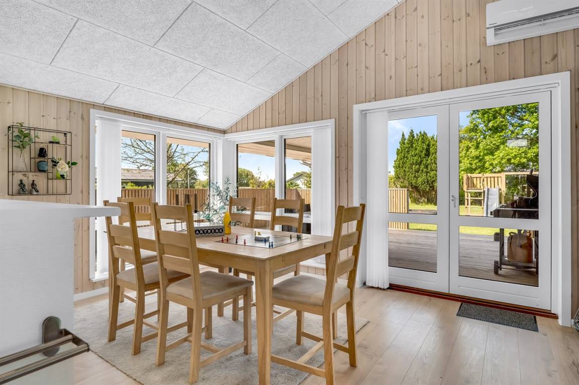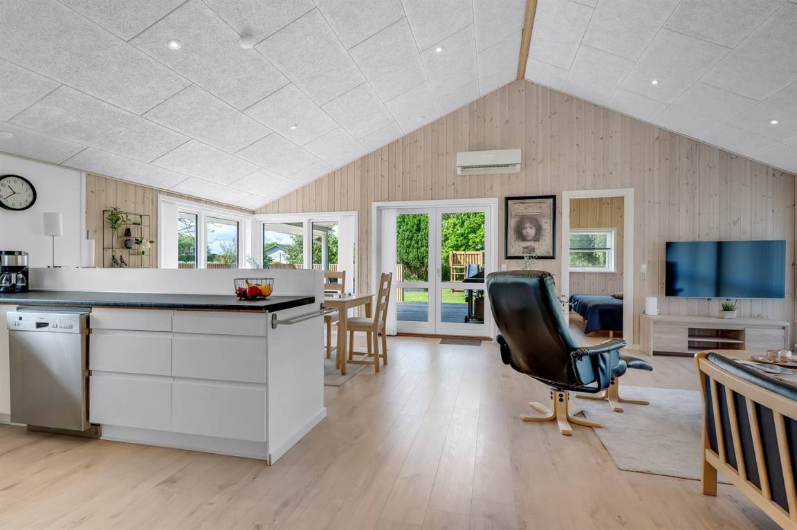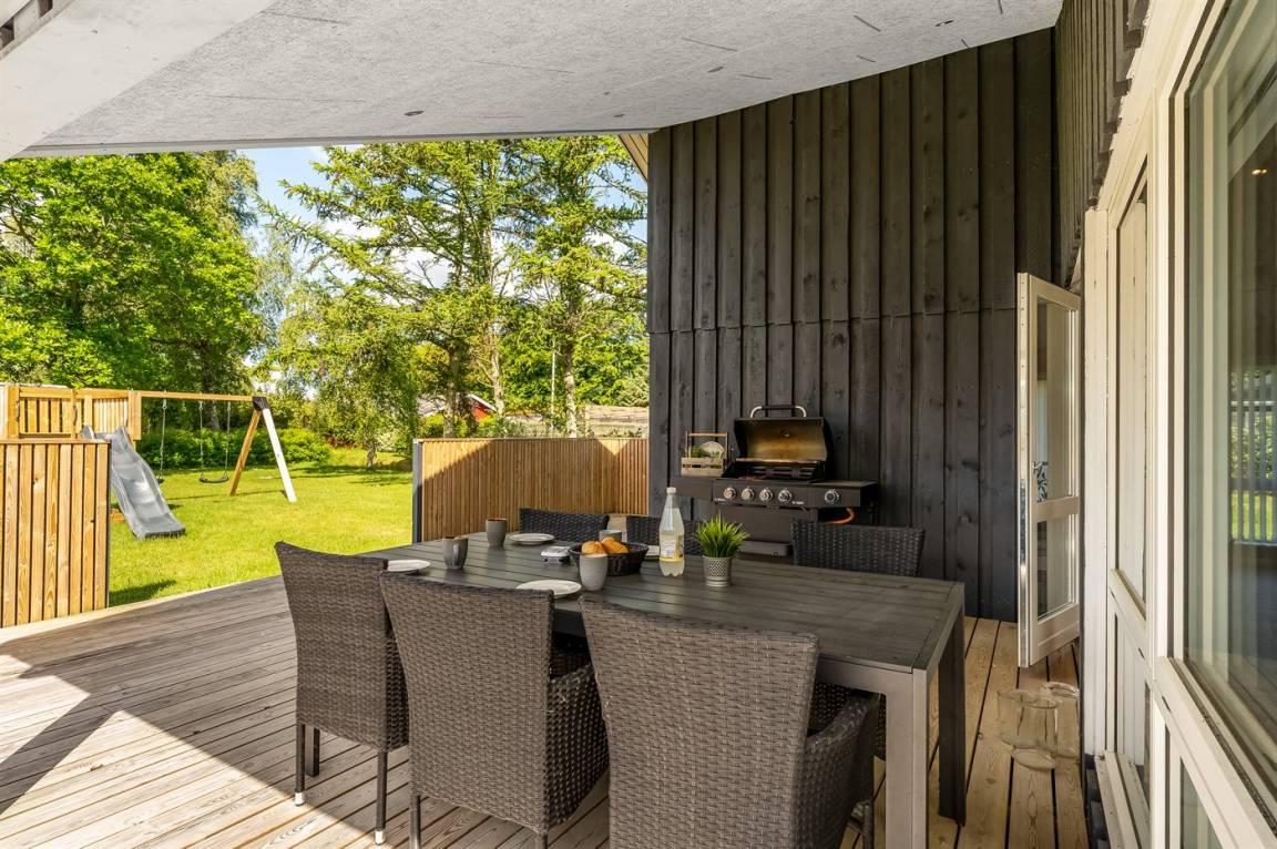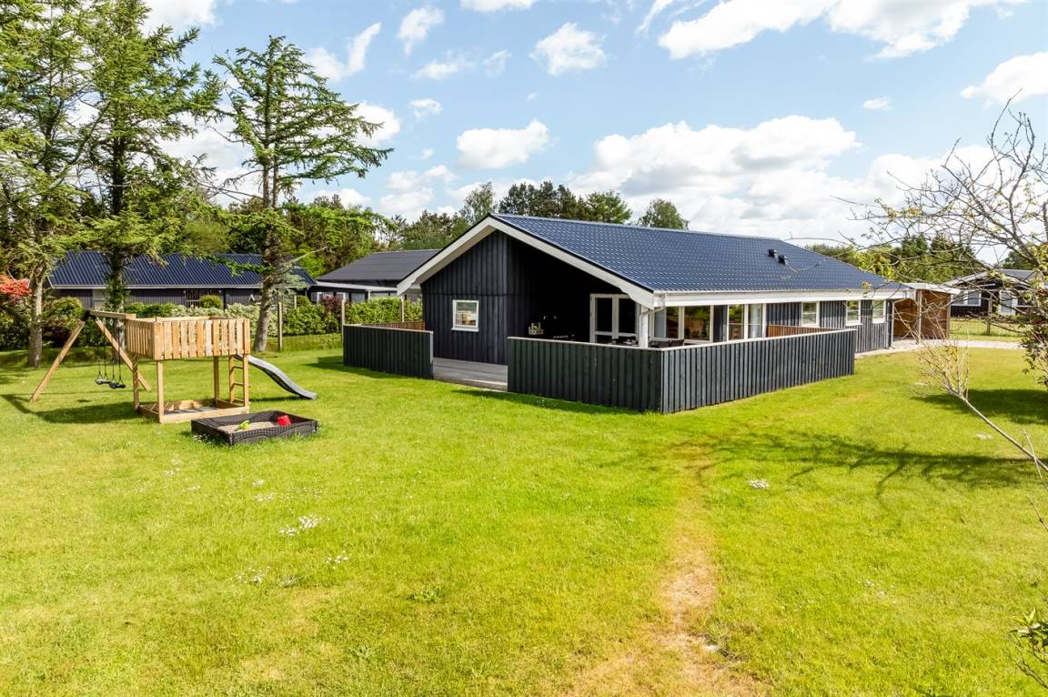 DraußenDie Ferienunterkunft liegt auf einem 1200 m² großen Gartengrundstück. Die Entfernung zum Meer beträgt 850 m. Die Entfernung zum Fjord beträgt 740 m. Die nächste Einkaufsmöglichkeit liegt 140 m entfernt. In einem Abstand von 3380 m gibt es einen Golfplatz. Es steht ein offenes Terrassenareal zur Verfügung. Außerdem gibt es überdachte Terrasse. Schaukel. Sandkasten. Rutsche. Es steht ein Grill zur Verfügung. Es ist ein Ladestecker für Elektroautos installiert. Ladestecker Typ 2. Mit einer Ladeleistung von 11 kW. Parkplatz auf dem Grundstück.