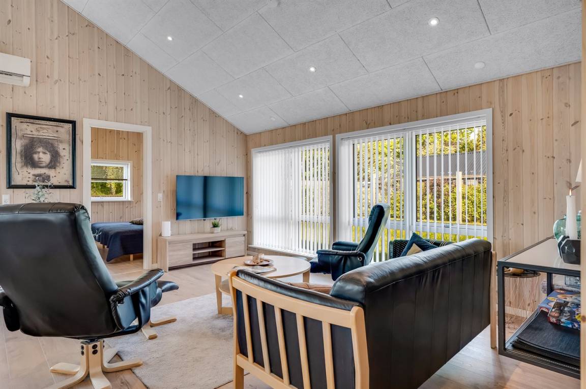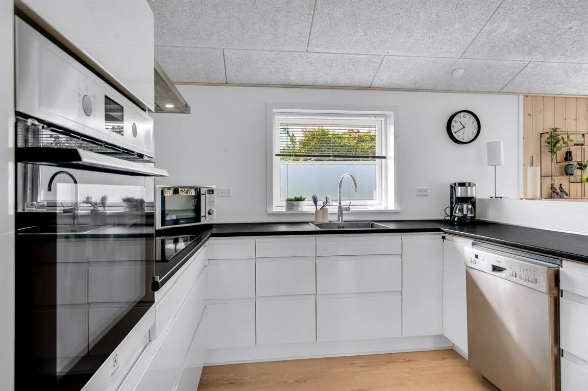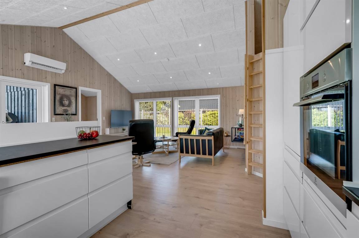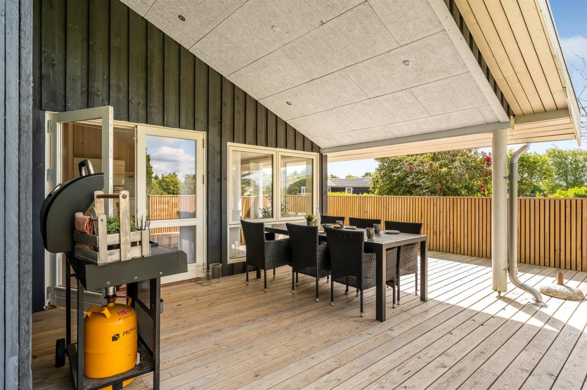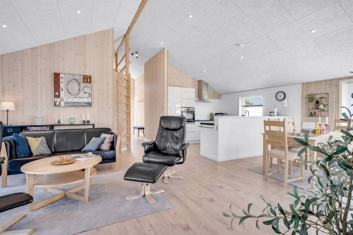 DraußenDie Ferienunterkunft liegt auf einem 1200 m² großen Gartengrundstück. Die Entfernung zum Meer beträgt 850 m. Die Entfernung zum Fjord beträgt 740 m. Die nächste Einkaufsmöglichkeit liegt 140 m entfernt. In einem Abstand von 3380 m gibt es einen Golfplatz. Es steht ein offenes Terrassenareal zur Verfügung. Außerdem gibt es überdachte Terrasse. Schaukel. Sandkasten. Rutsche. Es steht ein Grill zur Verfügung. Es ist ein Ladestecker für Elektroautos installiert. Ladestecker Typ 2. Mit einer Ladeleistung von 11 kW. Parkplatz auf dem Grundstück.