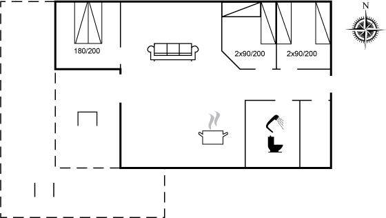 SchlafverhältnisseDie Schlafplätze verteilen sich auf 3 Schlafräume. 2 Schlafplätze in einem Doppelbett. 4 Schlafplätze in Einzelbetten. Ferner steht ein Kinderbett zur Verfügung.