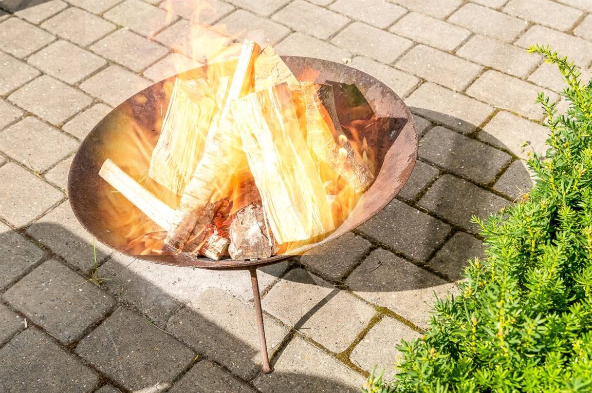 Beim Ferienhaus gibt es auch eine Windschutzhütte mit Lagerfeuerstelle sowie einen Ballplatz.