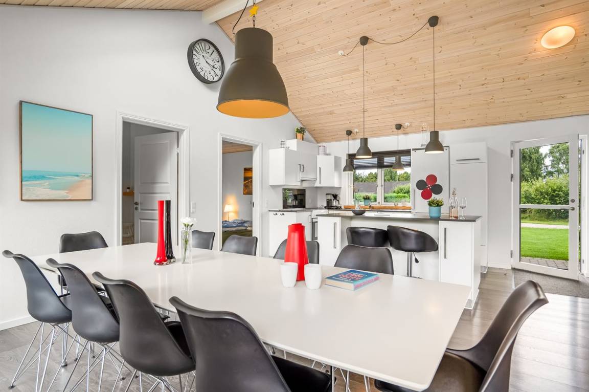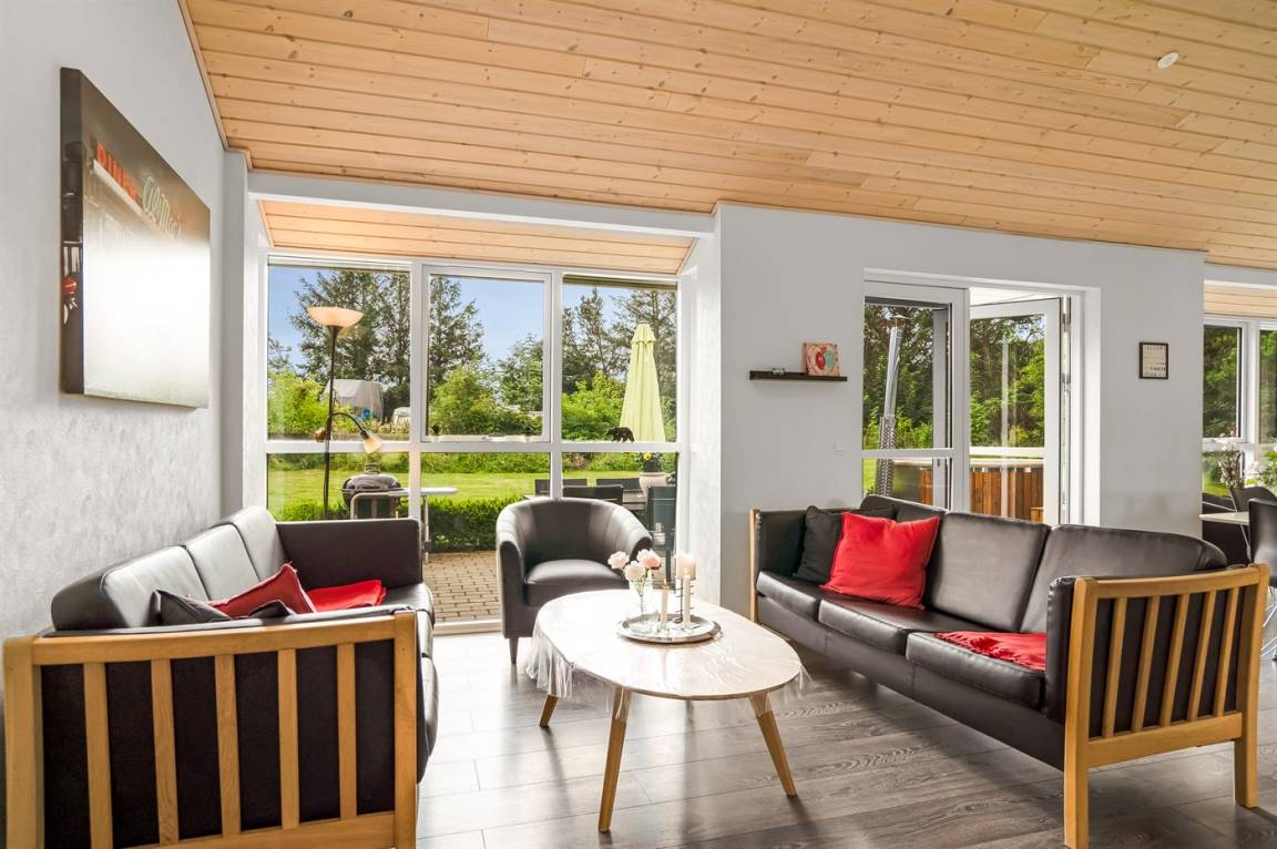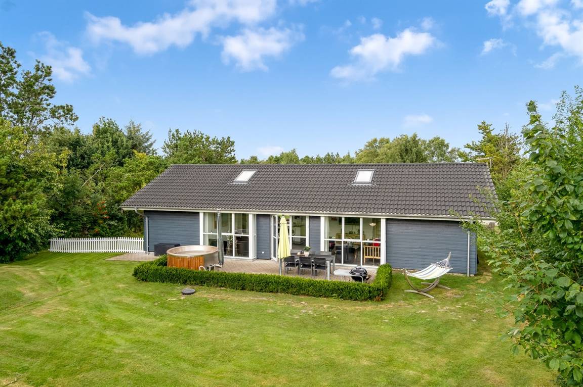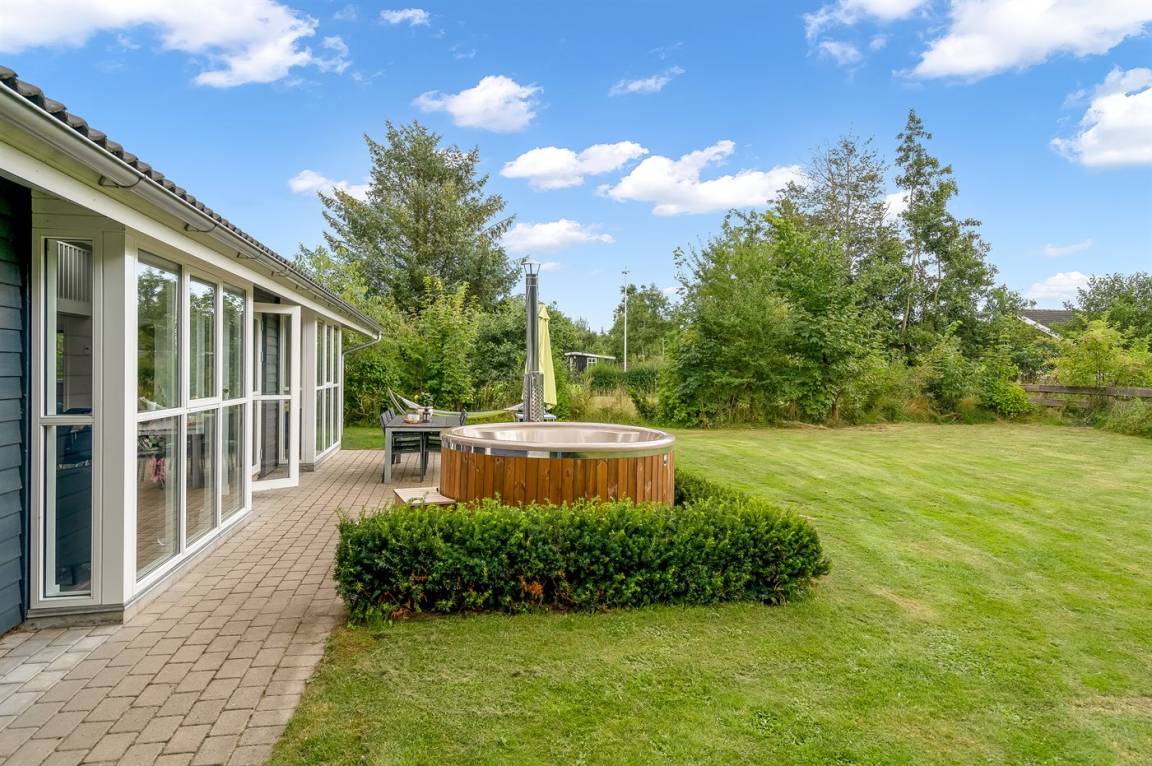 Das Haus bietet Platz für die ganze Familie und die vierbeinigen Freunde und zeichnet sich durch eine moderne Küche und ein Badezimmer mit einem herrlichen Whirlpool aus. Es gibt eine schöne Terrasse mit direktem Zugang vom Wohnzimmer. Das Grundstück ist eingezäunt, und selbst die kühlen Abende können im Freien genossen werden, wenn man in das große Badefass mitten auf der Terrasse steigt.