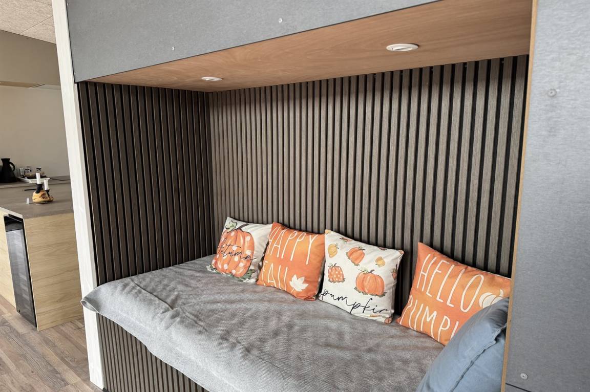 DraußenDie Ferienunterkunft liegt auf einem 1209 m² großen Gartengrundstück. Das Grundstück ist eingezäunt. Die Entfernung zum Meer beträgt 1084 m. Die Entfernung zum Fjord beträgt 320 m. Die nächste Einkaufsmöglichkeit liegt 3800 m entfernt. In einem Abstand von 3200 m gibt es einen Golfplatz. Es steht ein offenes Terrassenareal zur Verfügung. Außerdem gibt es überdachte Terrasse. Schaukel. Spielturm. Rutsche. Außensauna. Außendusche. Es steht ein Grill zur Verfügung. Es steht ein Carport zur Verfügung. Parkplatz auf dem Grundstück.