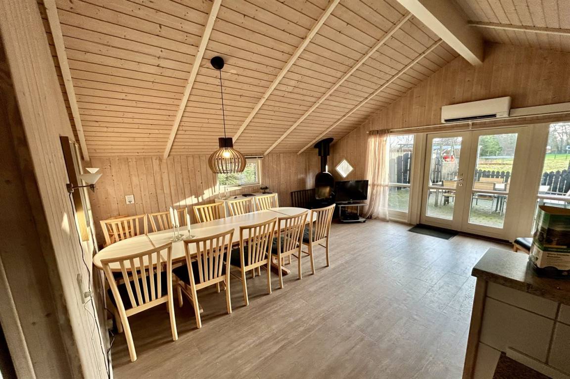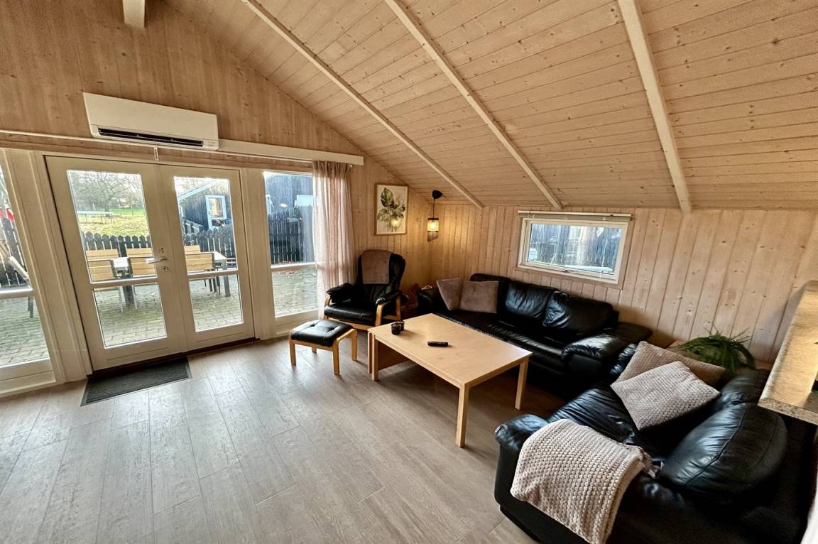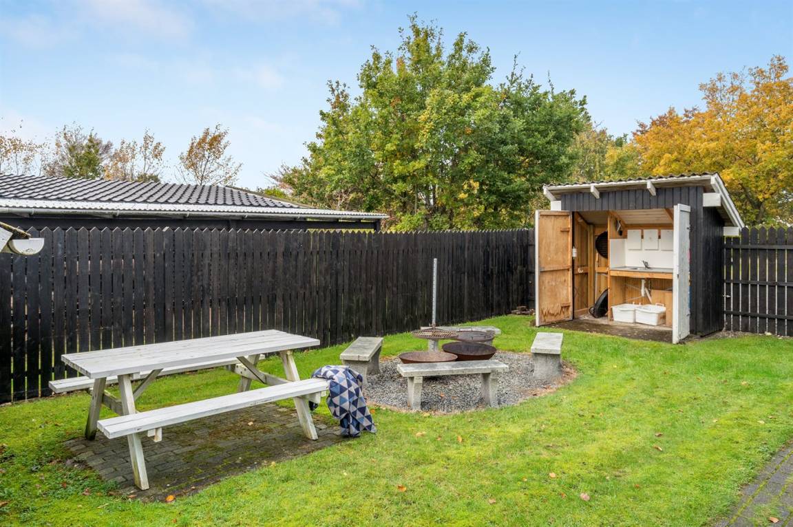 DraußenDie Ferienunterkunft liegt auf einem 1300 m² großen Gartengrundstück. Die Entfernung zum Meer beträgt 1300 m. Die Entfernung zum Fjord beträgt 350 m. Die nächste Einkaufsmöglichkeit liegt 600 m entfernt. Es steht ein 30 m² Terrassenareal zur Verfügung. Außerdem gibt es 10 m² überdachte Terrasse. Geräteraum. Schaukel. Sandkasten. Kinderspielhaus. Trampolin.Lagerfeuerstelle.An Sommerabenden sorgt der Außenkamin für eine gemütliche Atmosphäre. Es beteht die Möglichkeit das Essen in der Außenküche zuzubereiten. Es ist ein Ladestecker für Elektroautos installiert. Mit einer Ladeleistung von 11 kW. Parkplatz auf dem Grundstück.