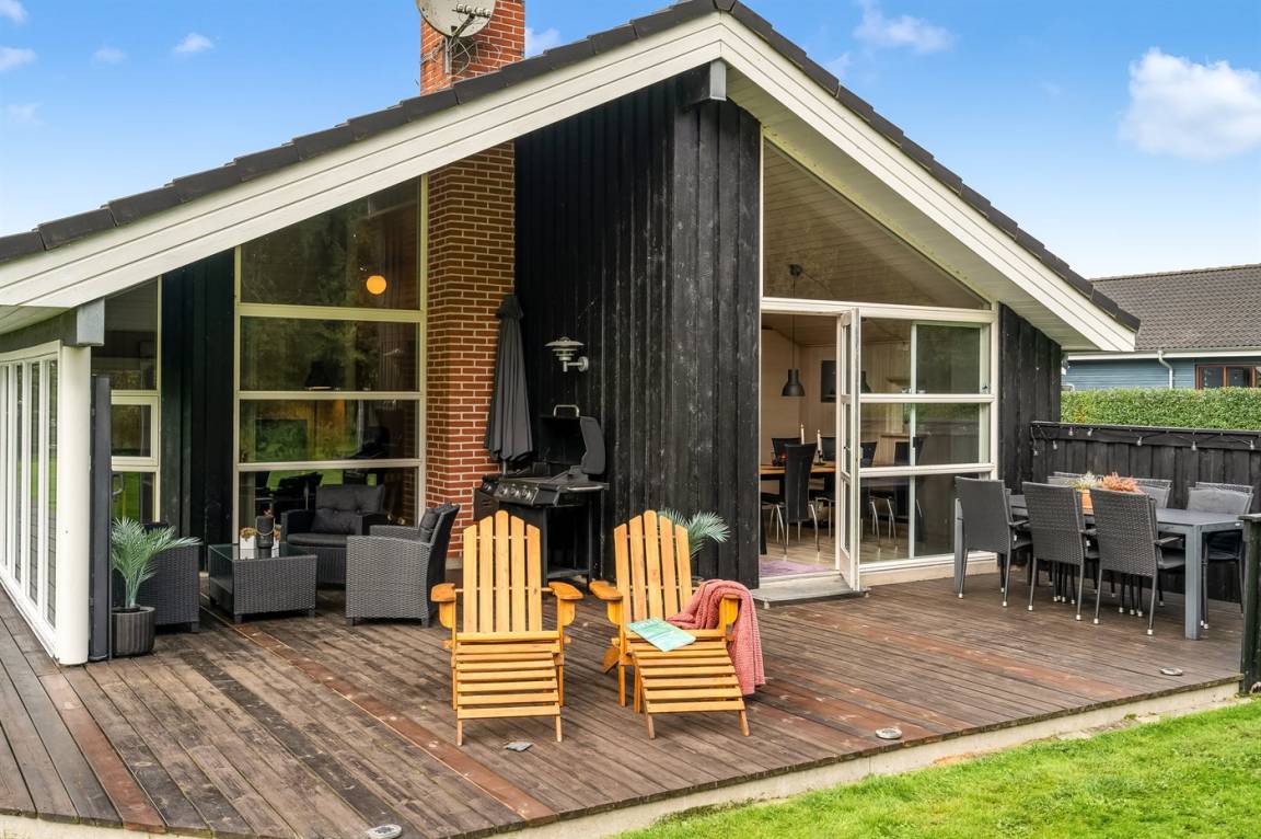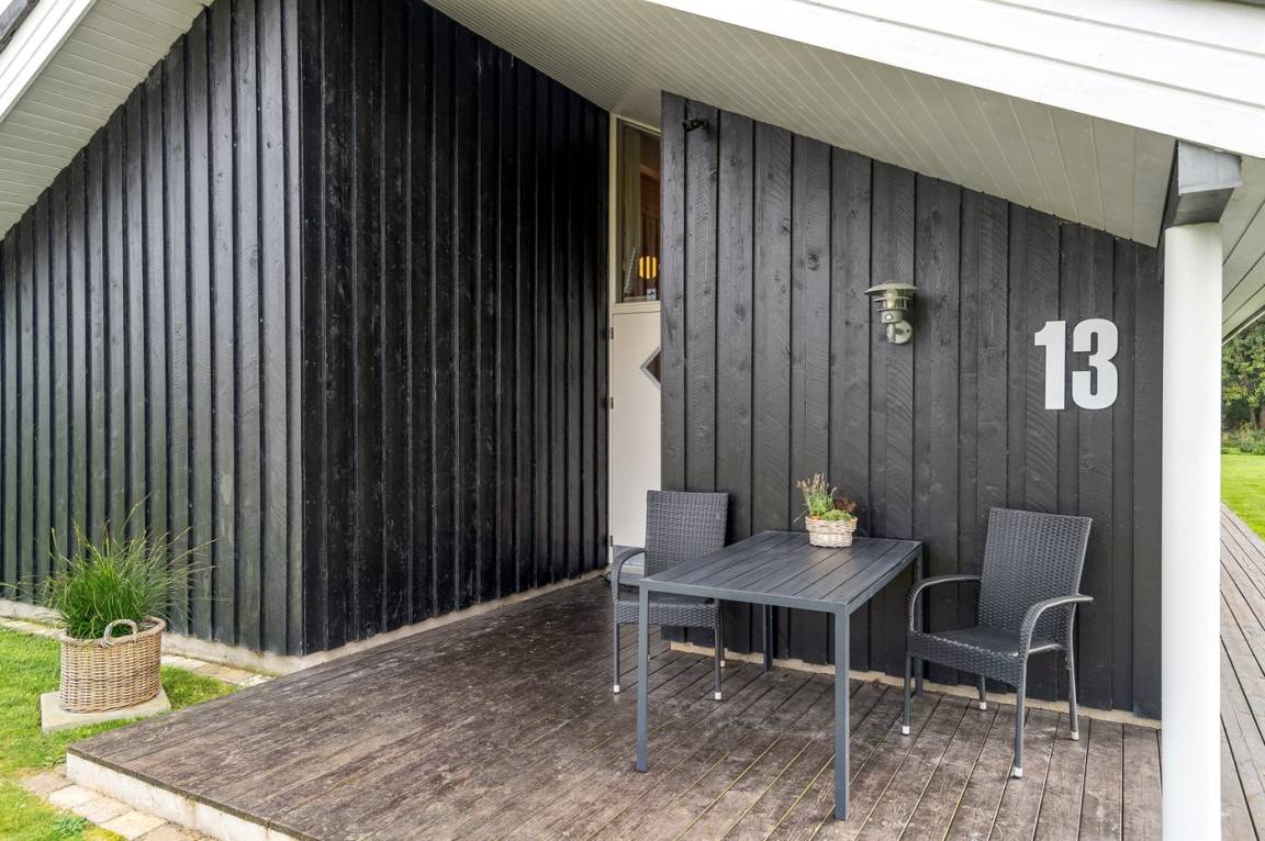 DraußenDie Ferienunterkunft liegt auf einem 1296 m² großen Gartengrundstück. Das Grundstück ist eingezäunt. Die Entfernung zum Meer beträgt 1900 m. Die Entfernung zum Fjord beträgt 250 m. Die nächste Einkaufsmöglichkeit liegt 800 m entfernt. Es steht ein offenes Terrassenareal zur Verfügung. Außerdem gibt es überdachte Terrasse. Windschutzhütte. Es steht ein Grill zur Verfügung. Parkplatz auf dem Grundstück.