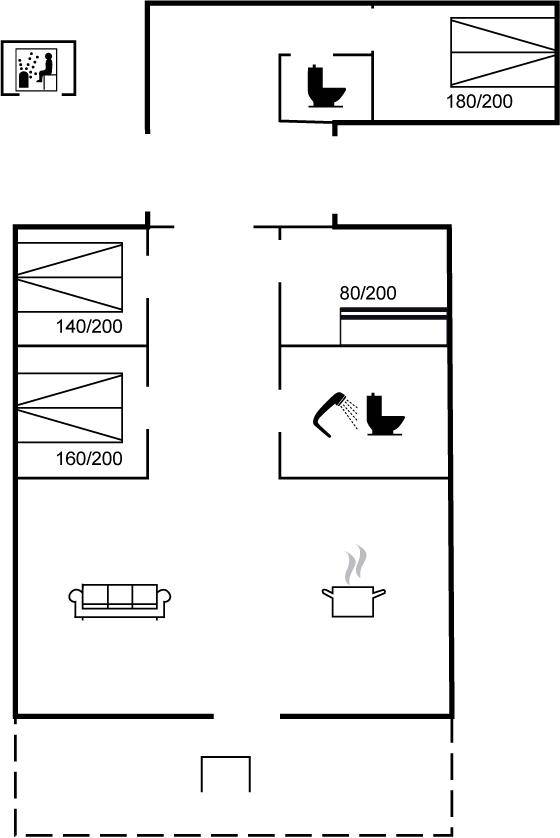 SchlafverhältnisseDie Schlafplätze verteilen sich auf 4 Schlafräume. 6 Schlafplätze in Doppelbetten. 2 Schlafplätze in einem Etagenbett. 2 Schlafplätze auf einer Doppelschlafcouch. 2 von diesen Schlafplätzen befinden sich im Wohnzimmer.