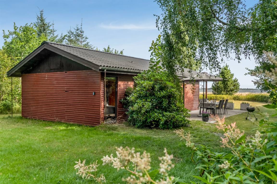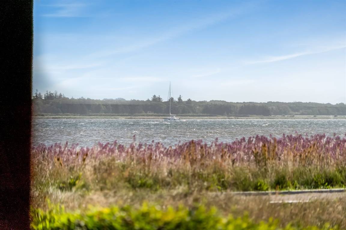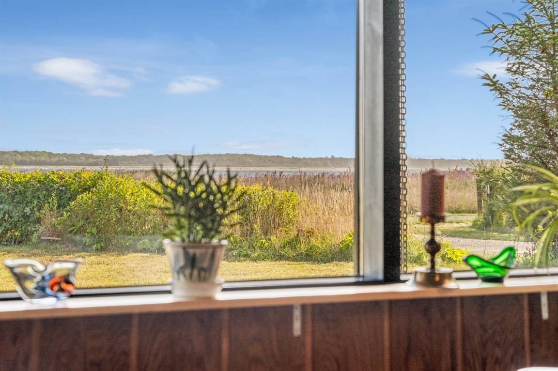 Ganz außergewöhnlich gut gelegenes Ferienhaus nur 75 m von dem Limfjord entfernt. Vom Wohnzimmer und überdachter Terrasse gibt es Panoramablick über das Wasser.