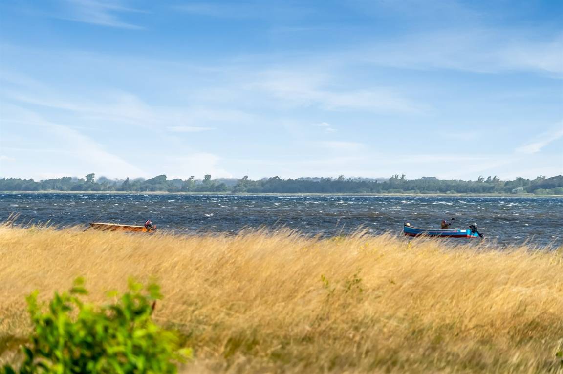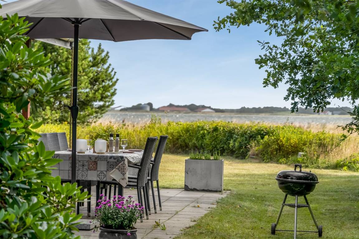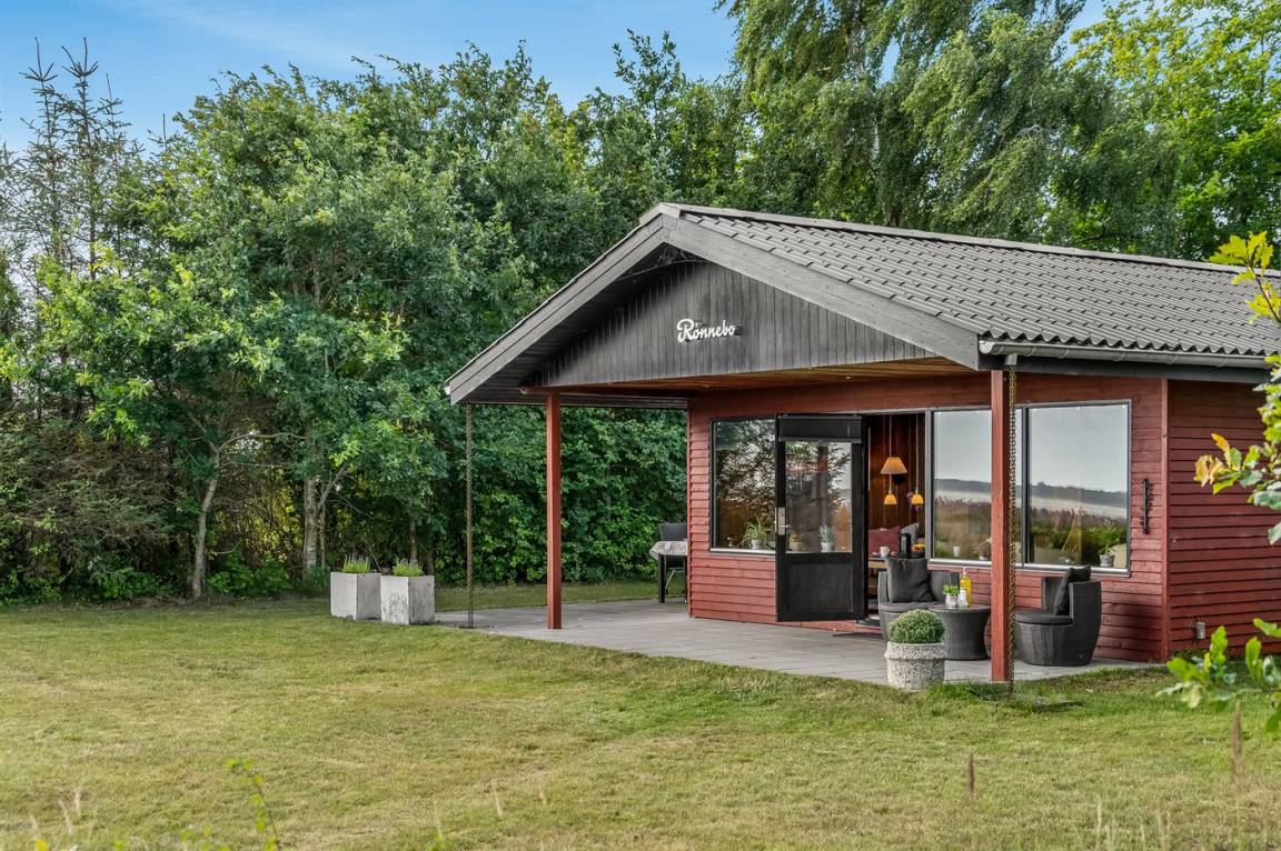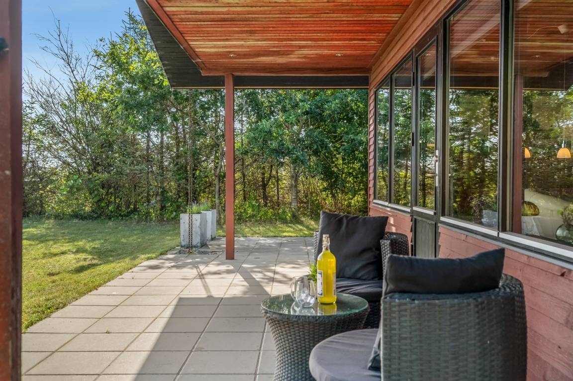 Ganz außergewöhnlich gut gelegenes Ferienhaus nur 75 m von dem Limfjord entfernt. Vom Wohnzimmer und überdachter Terrasse gibt es Panoramablick über das Wasser.