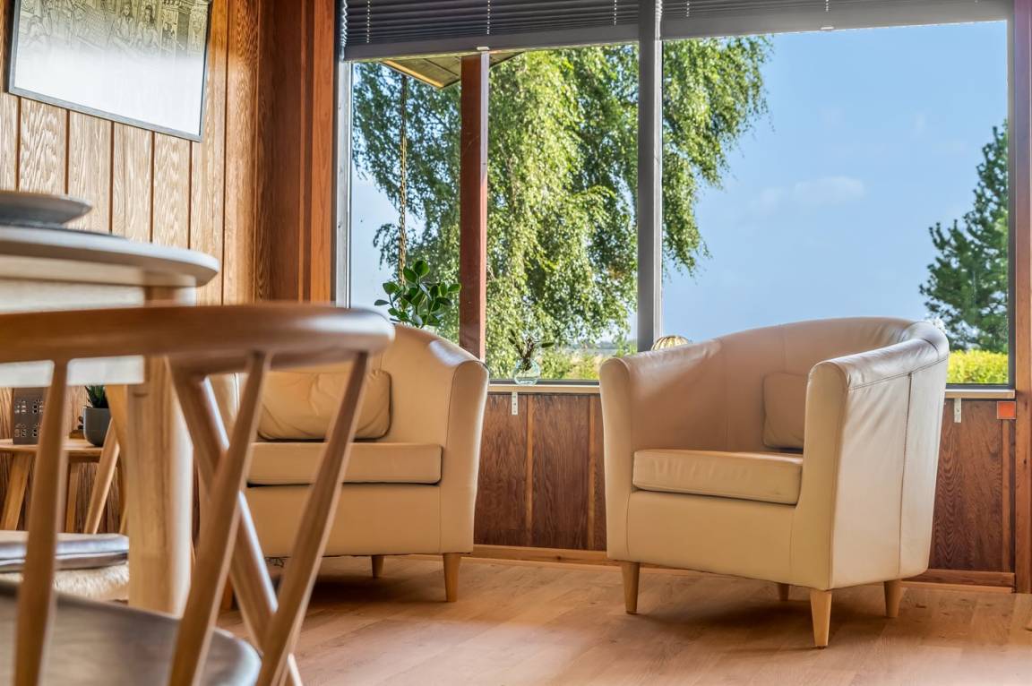 „The vacation at the holiday home: Leider gab es keine Beschreibung, wie der Fernseher an geht, das war sehr schwierig, am Ende haben wir nichts sehen können. Und von 6 Stühlen waren 5 Stück so wackelig, das ich mich auf keinen setzen möchte. The local office: Wir bekamen nicht den Schlüsselkasten auf, trotz wir den richtigen Code hatten. Als wir im Büro anriefen, sagte ein Band, das dass Büro nicht besetzt ist und wir über WWW. die Notfall Nummer anrufen sollten. Leider hatten wir keinen Internetempfang vor Ort, so das diese Möglichkeit entfiel. Das hätte man vielleicht auf der Ansage bekannt geben können. Wir fanden einen sehr nett Nachbarn, der dann die Nummer raussuchen konnte und dort anrief. Wir bekamen natürlich die Code Nummer, die wir schon hatten. Leider müssten wir mit etwas sehr viel Kraft, an diesem Kasten ziehen, Hier würde etwas Oel helfen. The holiday home itself: Das Haus liegt sehr schön, unser Fokus lang auf dem Limfjord, den wollten wir beobachten und dafür ist das Haus perfekt. Wir würden es immer wieder mieten“