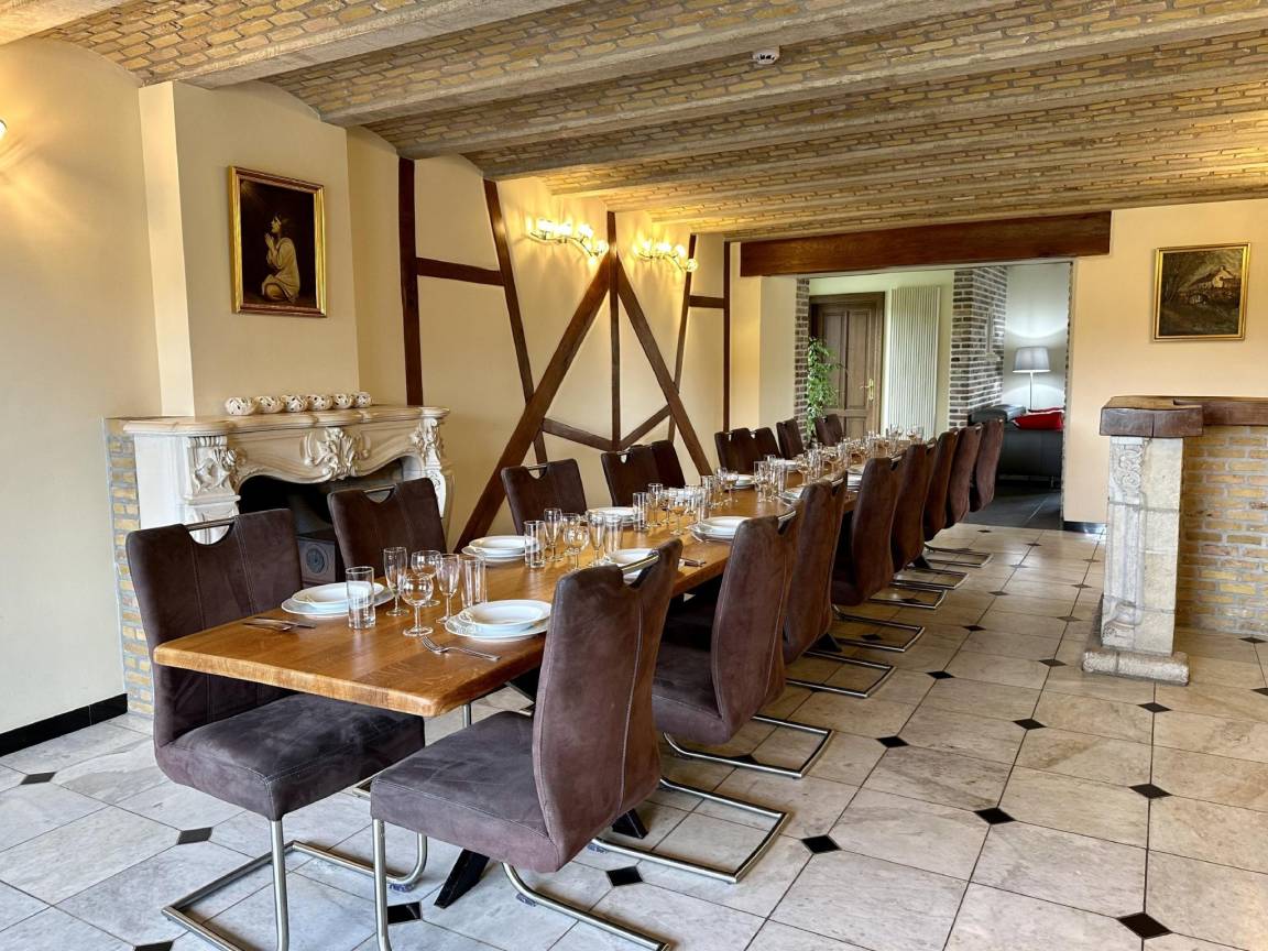 Layout : Parterre: Aufenthaltsraum mit TV, DVD-Player, Stereoanlage , Esszimmer mit Esstisch , Küche mit 4x Kochplatte, Wasserkocher, Toaster, Kaffeemaschine(Filter), Mikrowelle, Geschirrspüler, 2x Kühlschrank, Tiefkühlschrank , 2x Toilette, Freizeitraum mit TV, Stereoanlage, Billard