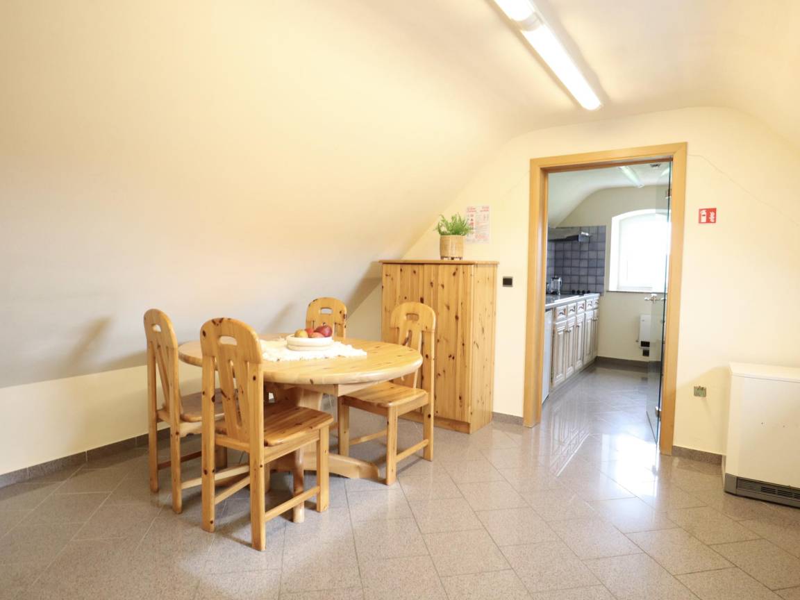Gästeunterkunft in der 1. Etage: Aufenthaltsraum mit Doppelschlafcouch(160 x 200 cm), TV, DVD-Player , Esszimmer, Küche mit 4x Kochplatte, Wasserkocher, Toaster, Dunstabzugshaube, Kaffeemaschine(Filter), Kühlschrank , Schlafzimmer mit 2x Einzelbett(90 x 200 cm) , Badezimmer mit Waschbecken, Dusche, Toilette
