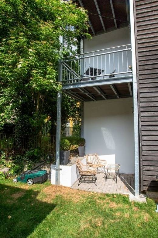 Vom Wohn-/Schlafbereich gelangen sie über eine kleine zur Wohnung gehörenden Terrasse in den ruhigen Innenhof. Hier können sie an lauen Sommerabenden mit einem Glas Wein oder einem kühlen Bier den Tag ausklingen lassen.
