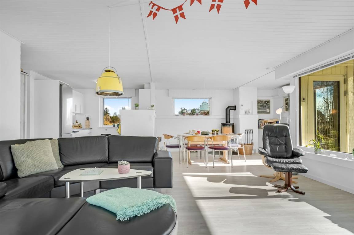 In dem schönen Feriengebiet Bratten, nicht weit vom schönen Sandstrand entfernt, liegt dieses herrliche und gut eingerichtete Ferienhaus. Zum Haus gehören eine große, in Richtung Südwesten gerichtete Terrasse sowie ein großes Grundstück, das zu Ballspiele und andere Aktivitäten im Freien einlädt. Nicht weit vom Haus entfernt liegt die kleine Stadt Strandby mit einem großen Fischerei – sowie Jachthafen, guten Einkaufsmöglichkeiten und einer lebendigen Atmosphäre.