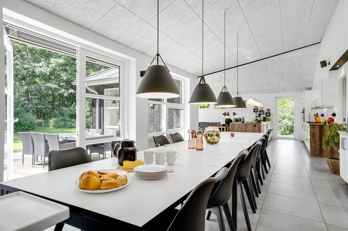Das Ferienhaus eignet sich für 14 Personen sowie 1 Kleinkind bis zu 3 Jahren. Die Ferienunterkunft hat eine Wohnfläche von 239 m² und wurde 2018 gebaut. Haustiere dürfen nicht mitgebracht werden. Es gibt Erdwärme. Fußbodenheizung in allen Räumen. Die Ferienunterkunft ist mit Waschmaschine ausgestattet. Wäschetrockner. Tiefkühlmöglichkeit mit 250 Liter Nutzinhalt. Für die jüngsten Feriengäste ist 1 Kinderhochstuhl vorhanden.
