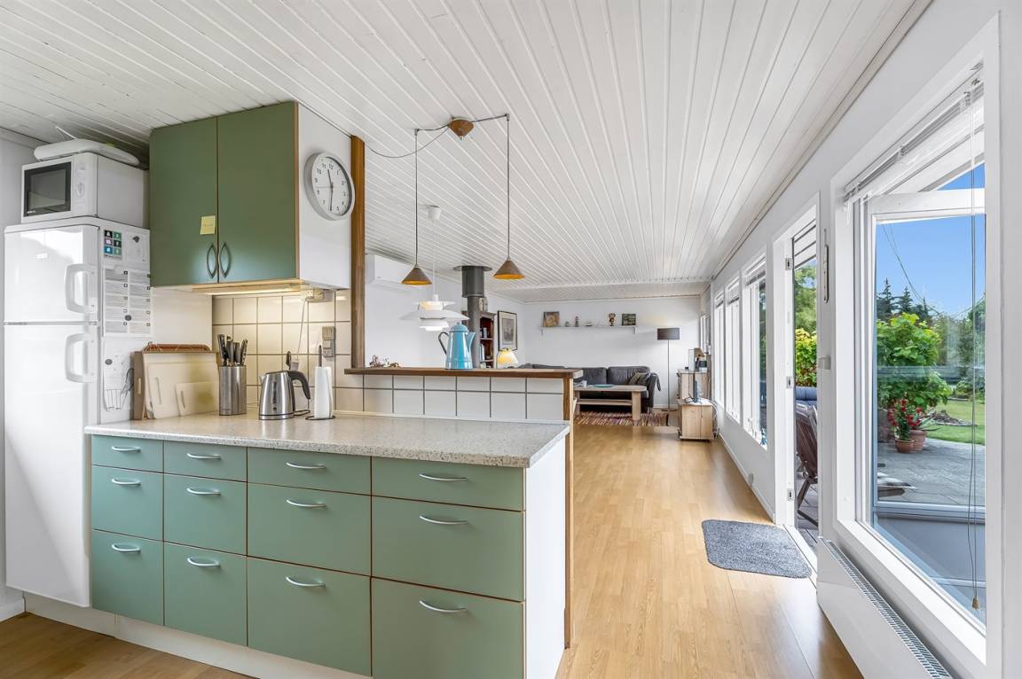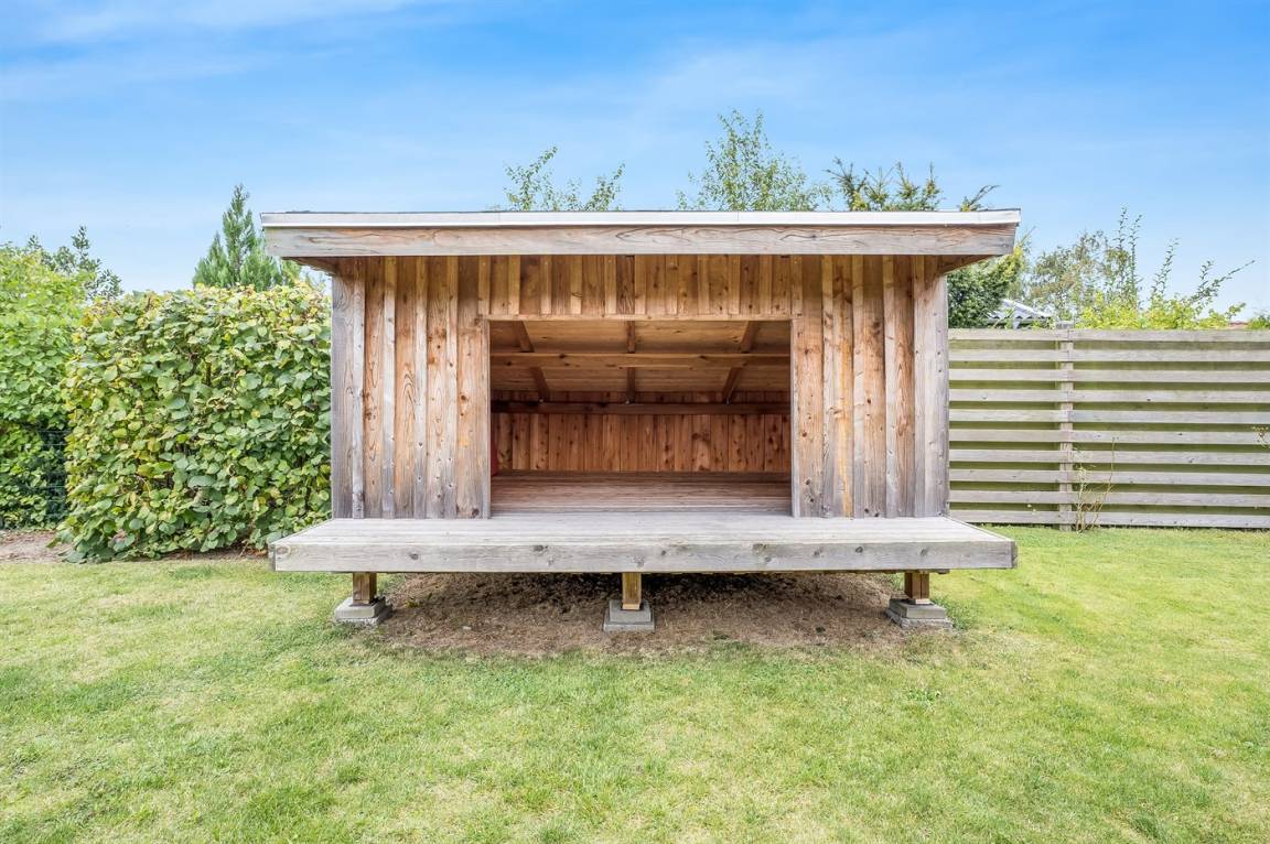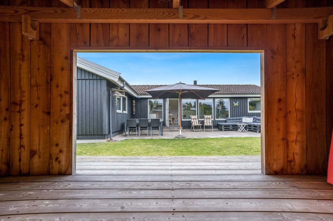 DraußenDie Ferienunterkunft liegt auf einem 800 m² großen Naturgrundstück. Die Entfernung zum Meer beträgt 150 m. Die nächste Einkaufsmöglichkeit liegt 4000 m entfernt. Es steht ein offenes Terrassenareal zur Verfügung. Schaukel. Windschutzhütte. Es steht ein Grill zur Verfügung. Parkplatz auf dem Grundstück.