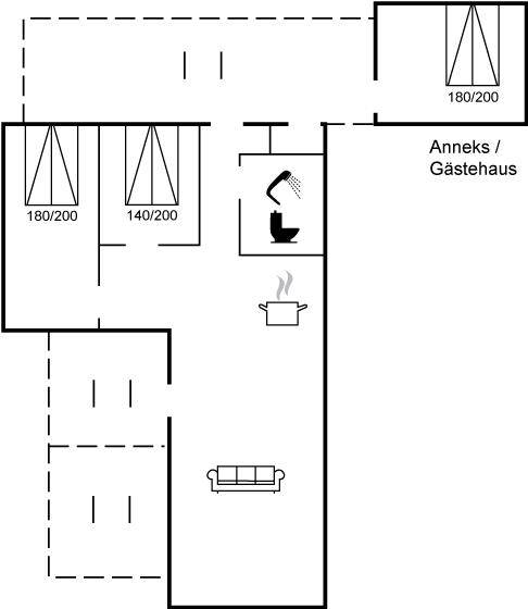 SchlafverhältnisseDie Schlafplätze verteilen sich auf 3 Schlafräume. 6 Schlafplätze in Doppelbetten. 2 von diesen Schlafplätzen befinden sich im Gästehaus.