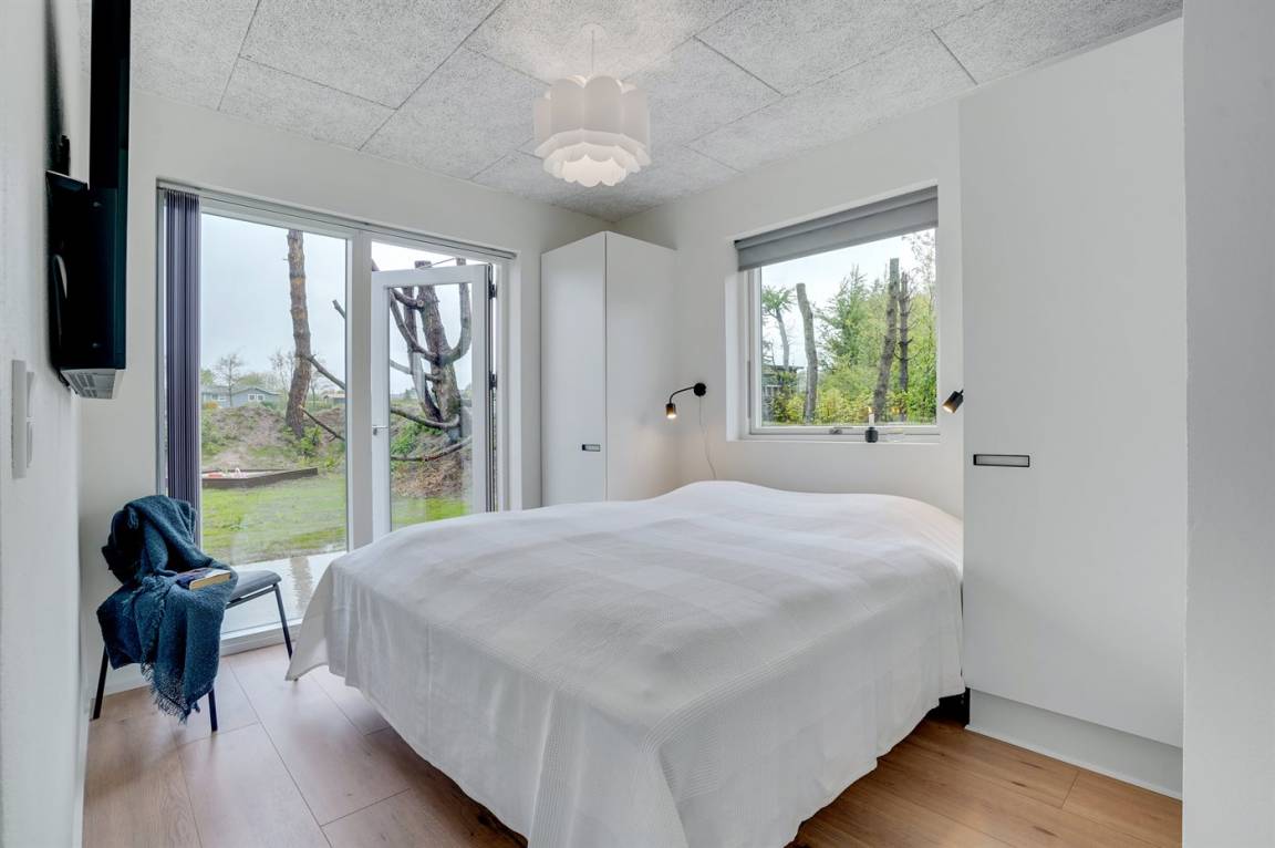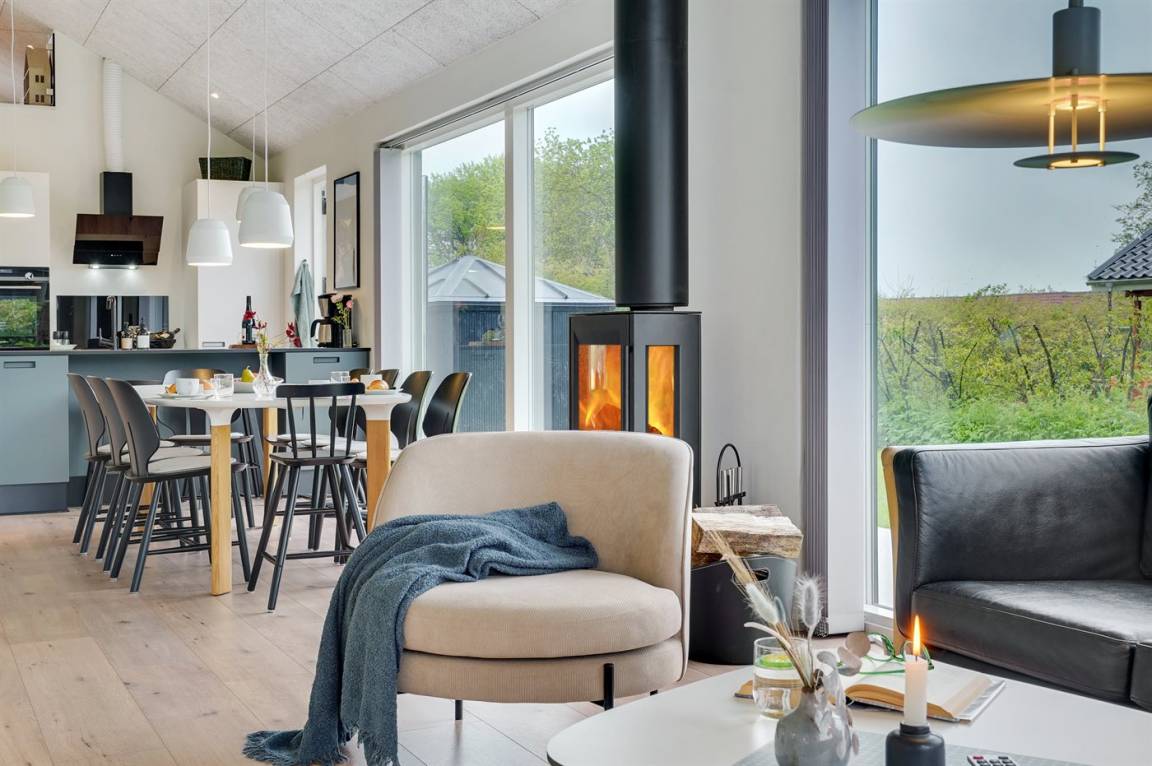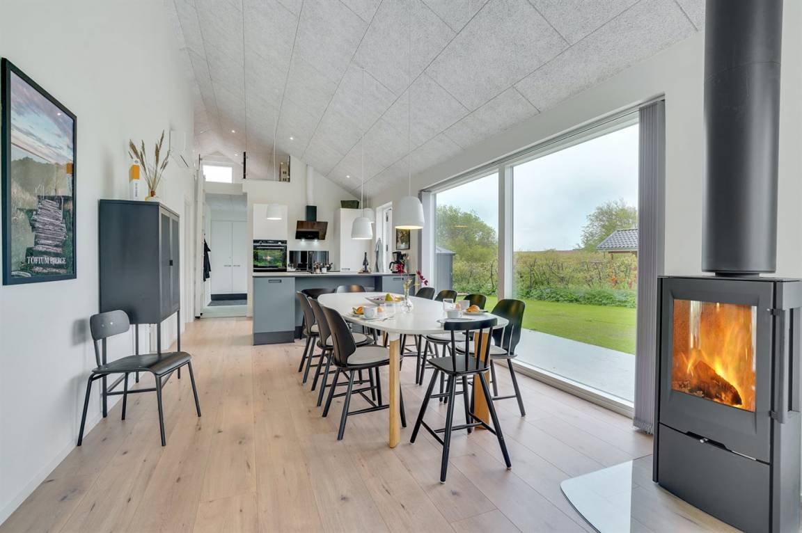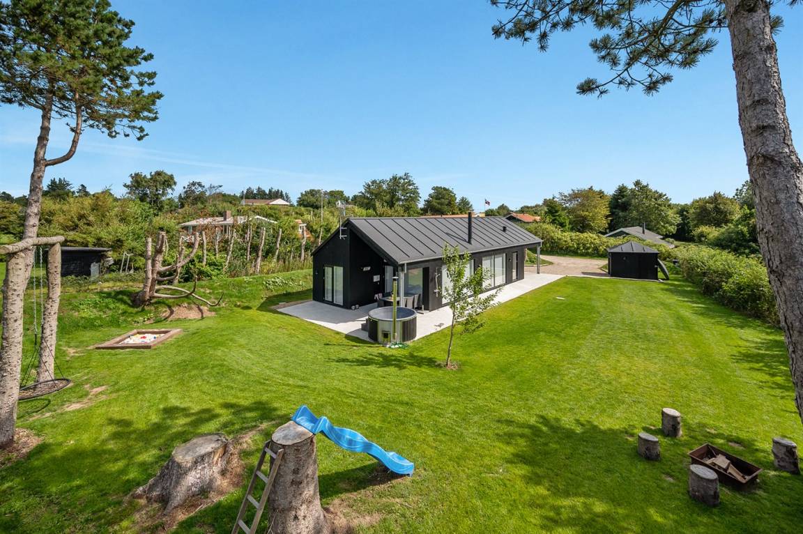 In dem naturschönen Feriengebiet Toftum Bjerge liegt dieses besonders schöne, 2021 neu erbaute Ferienhaus. Die Einrichtung ist stilvoll mit Möbeln von hoher Qualität, welche für ein angenehmes Ambiente sorgen. Es steht ein offenes Obergeschoss mit 2 Schlafplätzen zur Verfügung. Genießen Sie die Abende auf der überdachten Terrasse, während sich die Kinder auf dem Grundstück, wo verschiedene Spielgeräte zur Verfügung stehen, austoben können. Ist Ihnen nach etwas Bewegung unternehmen Sie ganz einfach einen langen Spaziergang am Fjord entlang. Verlangt es Sie eher nach einem Stadtbummel liegt die Stadt Struer nicht weit weg – hier finden Sie gute Einkaufsmöglichkeiten, Cafés und Restaurants.