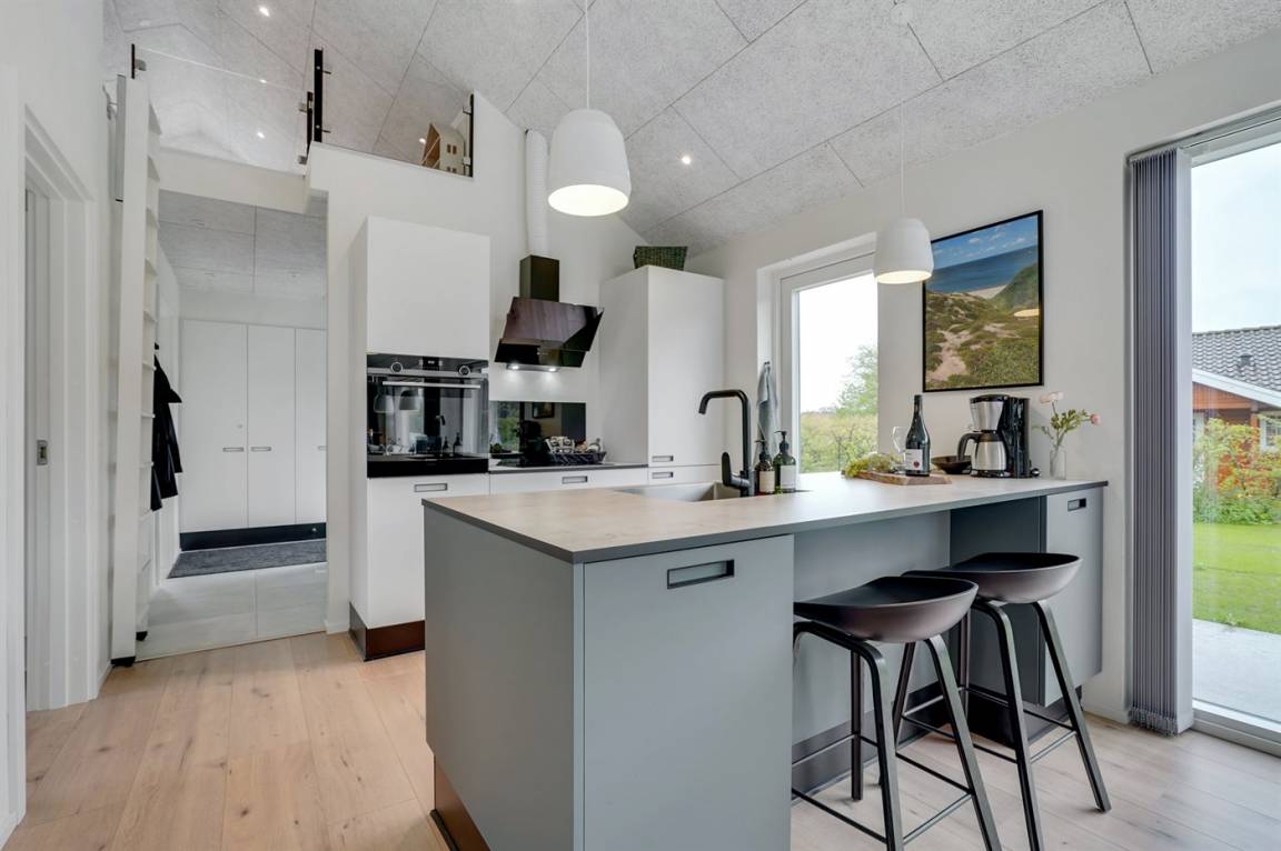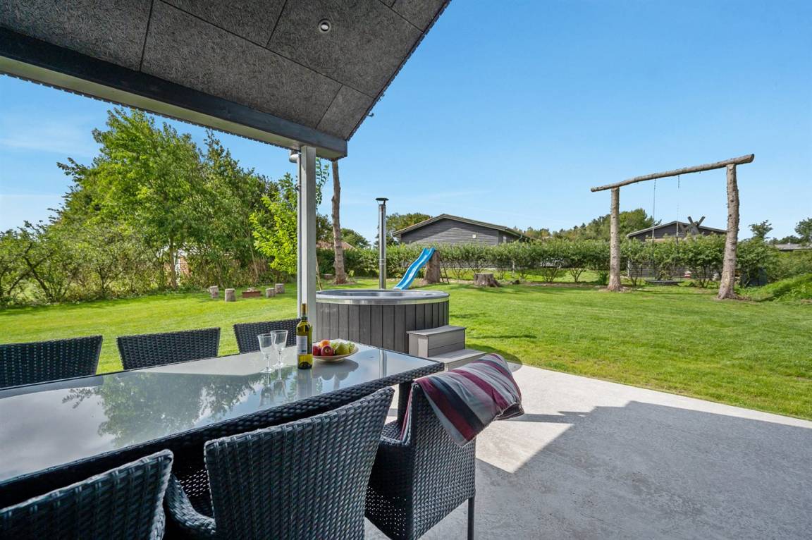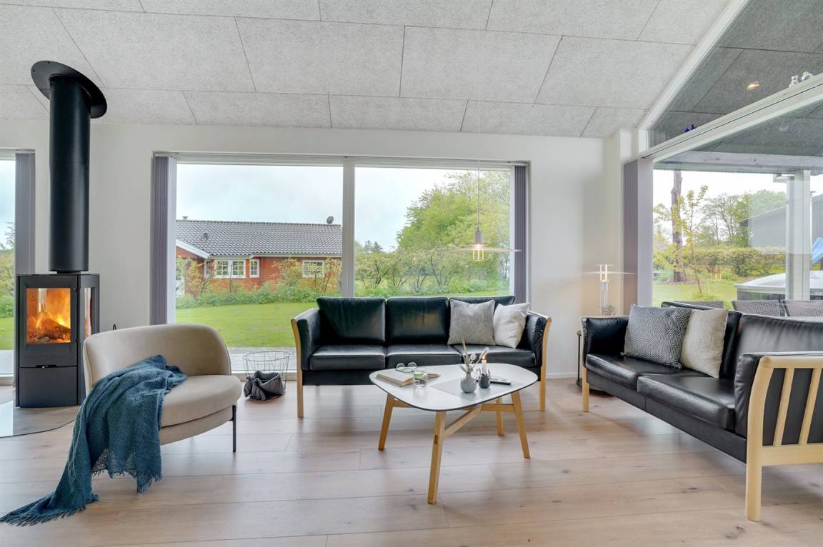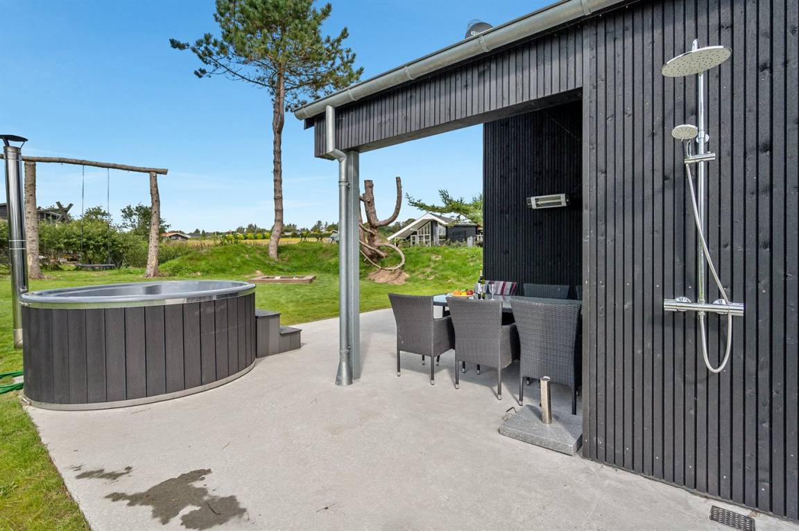 In dem naturschönen Feriengebiet Toftum Bjerge liegt dieses besonders schöne, 2021 neu erbaute Ferienhaus. Die Einrichtung ist stilvoll mit Möbeln von hoher Qualität, welche für ein angenehmes Ambiente sorgen. Es steht ein offenes Obergeschoss mit 2 Schlafplätzen zur Verfügung. Genießen Sie die Abende auf der überdachten Terrasse, während sich die Kinder auf dem Grundstück, wo verschiedene Spielgeräte zur Verfügung stehen, austoben können. Ist Ihnen nach etwas Bewegung unternehmen Sie ganz einfach einen langen Spaziergang am Fjord entlang. Verlangt es Sie eher nach einem Stadtbummel liegt die Stadt Struer nicht weit weg – hier finden Sie gute Einkaufsmöglichkeiten, Cafés und Restaurants.
