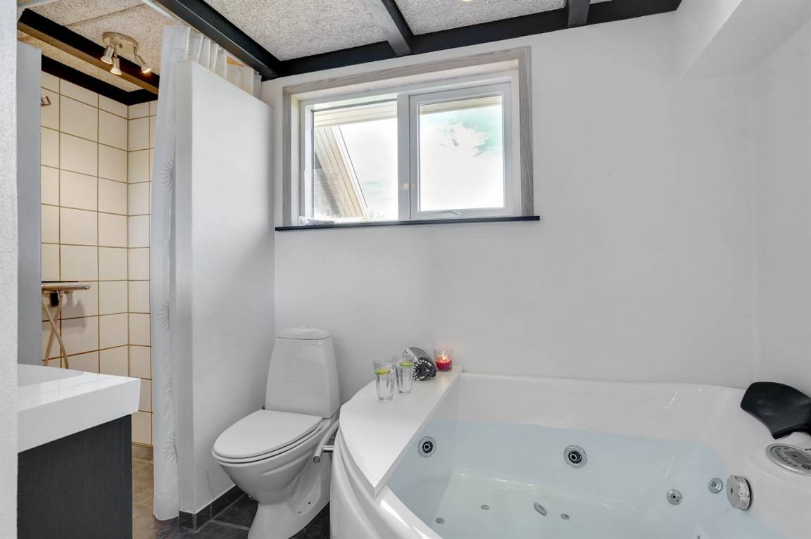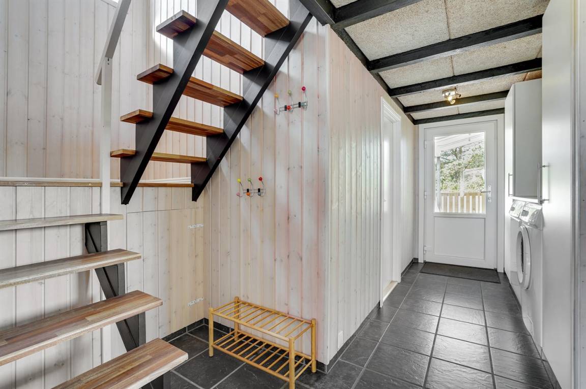 DraußenDie Ferienunterkunft liegt auf einem 923 m² großen Gartengrundstück. Das Grundstück ist eingezäunt. Die Entfernung zum Fjord beträgt 400 m. Die nächste Einkaufsmöglichkeit liegt 500 m entfernt. Es steht ein 60 m² Terrassenareal zur Verfügung. Geräteraum. Schaukel. Es ist ein Ladestecker für Elektroautos installiert. CEE Stecker. Parkplatz auf dem Grundstück.