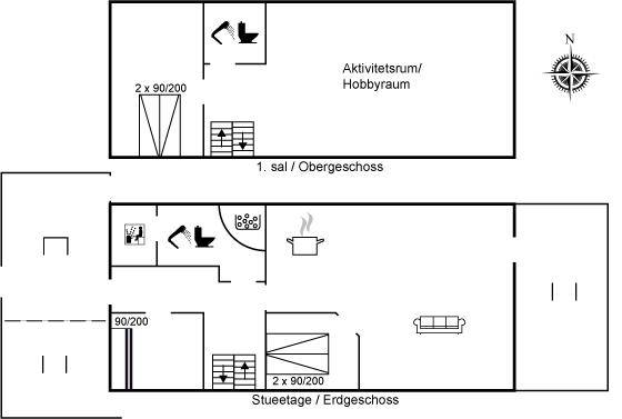 EinrichtungDas Ferienhaus eignet sich für 6 Personen sowie 1 Kleinkind bis zu 3 Jahren. Die Ferienunterkunft hat eine Wohnfläche von 120 m², ist 2-stöckig, und wurde 1965 gebaut. 2014 wurde die Ferienunterkunft teilweise renoviert. Es ist erlaubt 1 Haustier mitzubringen. Die Ferienunterkunft ist mit energiesparender Wärmepumpe ausgestattet. Fußbodenheizung in allen Klinkerböden. Die Ferienunterkunft ist mit Waschmaschine ausgestattet. Wäschetrockner. Tiefkühlmöglichkeit mit 90 Liter Nutzinhalt. Es gibt außerdem einen Kaminofen. Für die jüngsten Feriengäste ist 1 Kinderhochstuhl vorhanden.