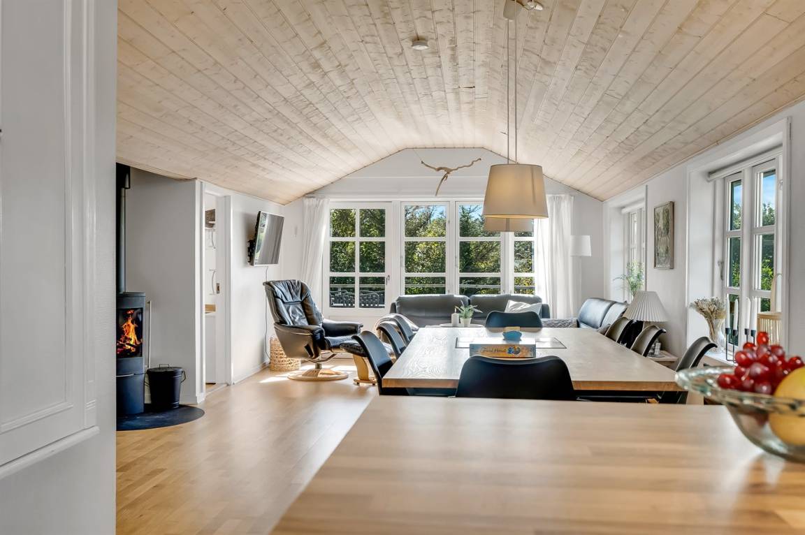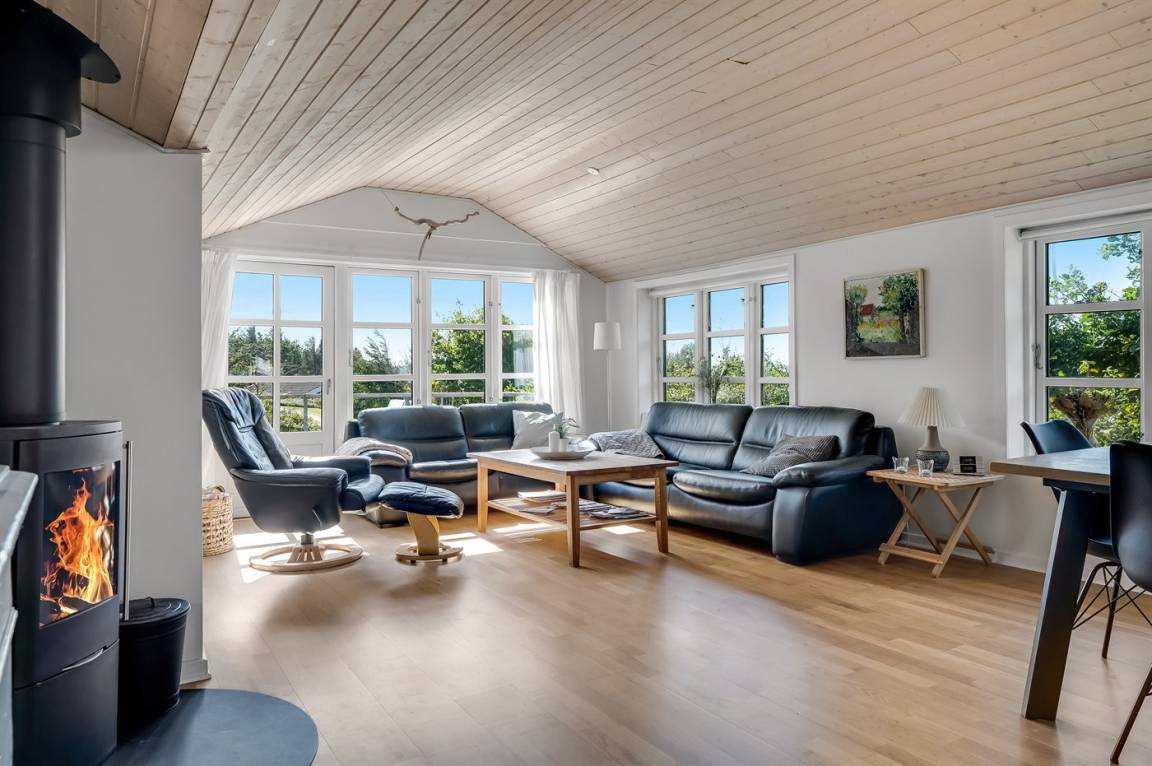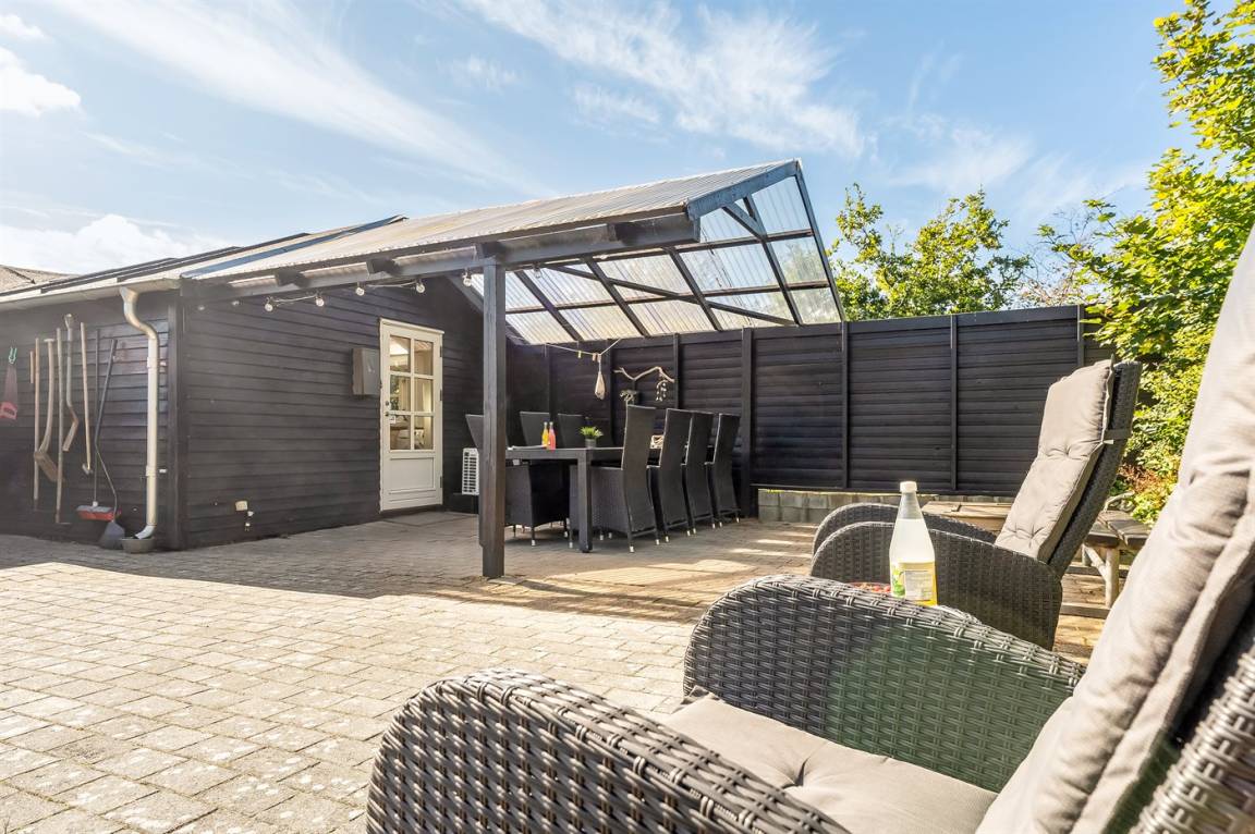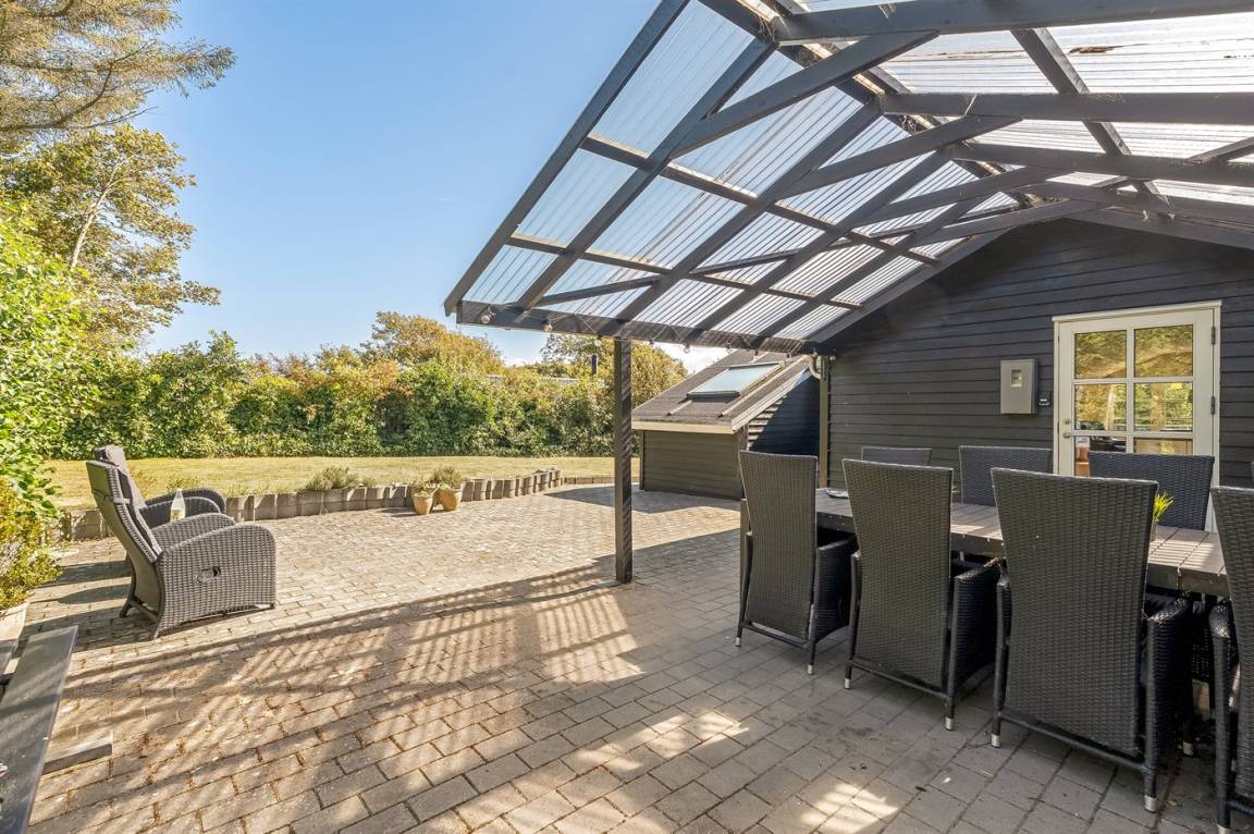 DraußenDie Ferienunterkunft liegt auf einem 702 m² großen Naturgrundstück. Die Entfernung zum Fjord beträgt 210 m. Die nächste Einkaufsmöglichkeit liegt 3000 m entfernt. In einem Abstand von 2000 m gibt es einen Golfplatz. Es steht ein offenes Terrassenareal zur Verfügung. Außerdem gibt es überdachte Terrasse. Sandkasten. Parkplatz auf dem Grundstück.