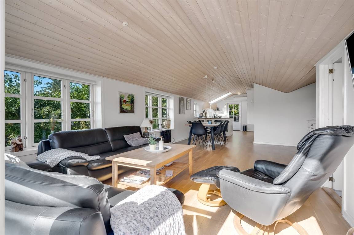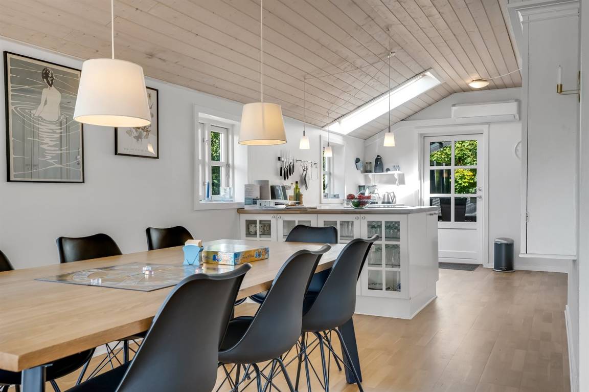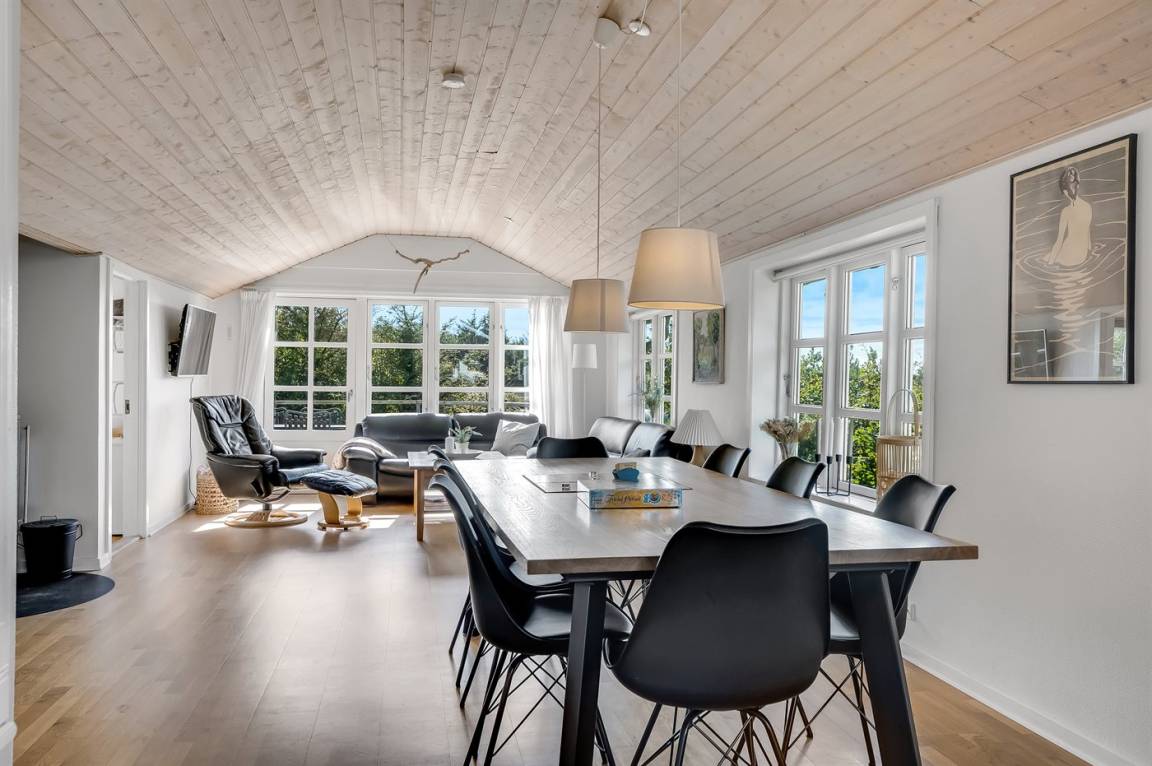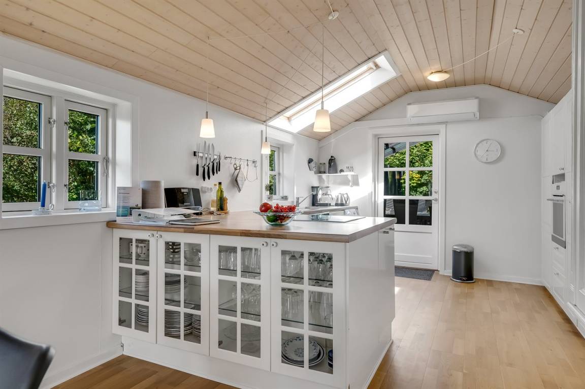 DraußenDie Ferienunterkunft liegt auf einem 702 m² großen Naturgrundstück. Die Entfernung zum Fjord beträgt 210 m. Die nächste Einkaufsmöglichkeit liegt 3000 m entfernt. In einem Abstand von 2000 m gibt es einen Golfplatz. Es steht ein offenes Terrassenareal zur Verfügung. Außerdem gibt es überdachte Terrasse. Sandkasten. Parkplatz auf dem Grundstück.