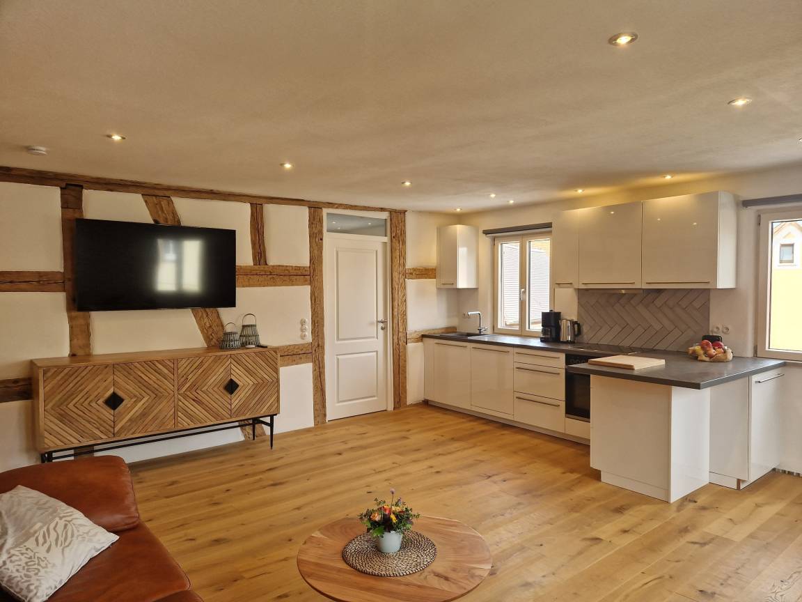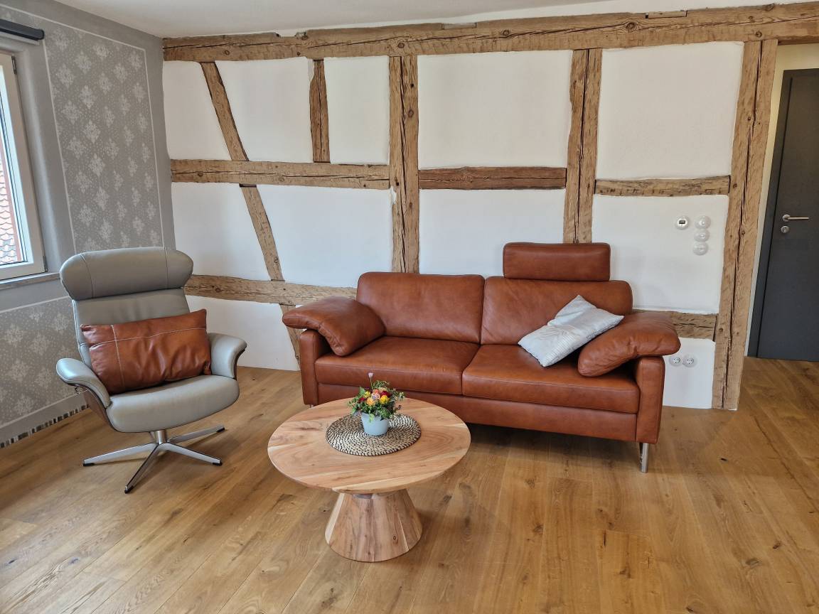 Die stilvoll sanierte Altbauferienwohnung "Stübla" im Erdgeschoss bietet dank Eichenholzparkett, Kalkputz und Kalkfarben ein gesundes Wohnklima sowie kostenfreies WLAN.