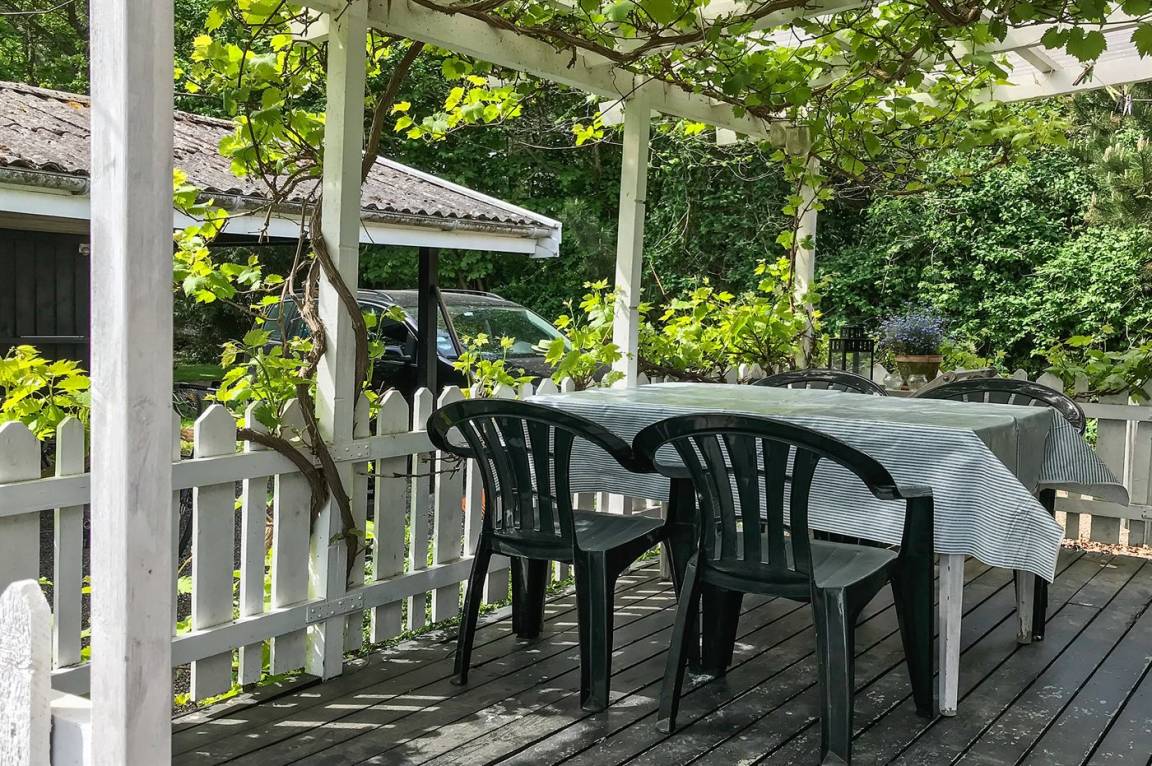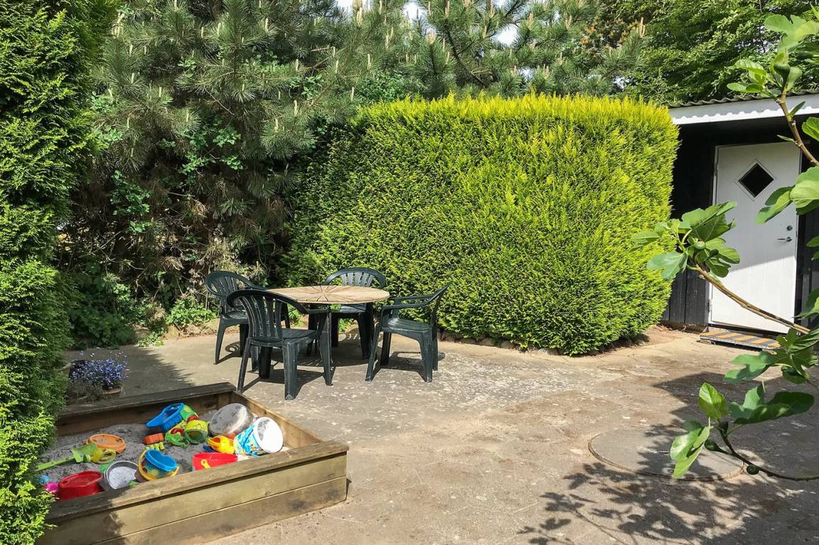 DraußenDie Ferienunterkunft liegt auf einem 805 m² großen Gartengrundstück. Die Entfernung zum Meer beträgt 100 m. Die nächste Einkaufsmöglichkeit liegt 4000 m entfernt. Es steht ein 15 m² Terrassenareal zur Verfügung. Außerdem gibt es 12 m² überdachte Terrasse. Schaukel. Sandkasten. Kinderspielhaus. Fußballtor.Lagerfeuerstelle. Es steht ein Carport zur Verfügung. Parkplatz auf dem Grundstück.