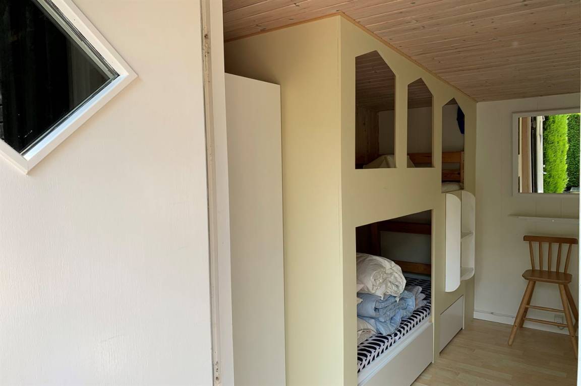 SchlafverhältnisseDie Schlafplätze verteilen sich auf 2 Schlafräume. 2 Schlafplätze in einem Doppelbett. 4 Schlafplätze in Etagenbetten. 2 Schlafplätze auf einer Doppelschlafcouch. 2 von diesen Schlafplätzen befinden sich im Gästehaus und 2 befinden sich im Wohnzimmer. Ferner steht ein Kinderbett zur Verfügung.