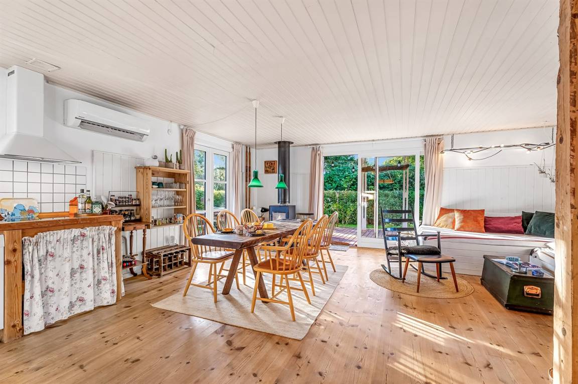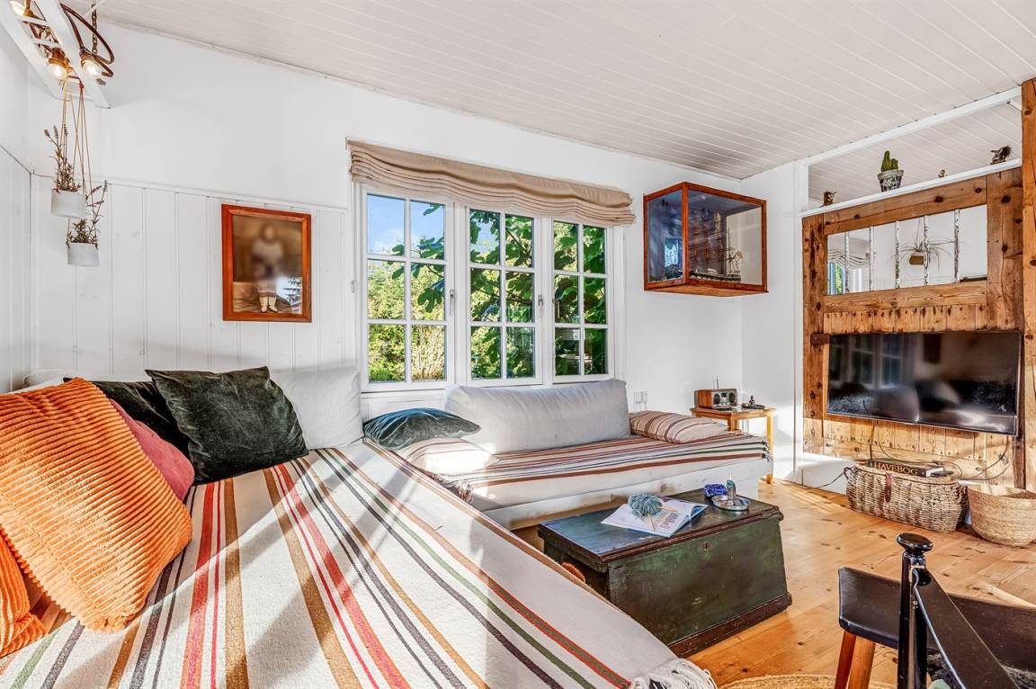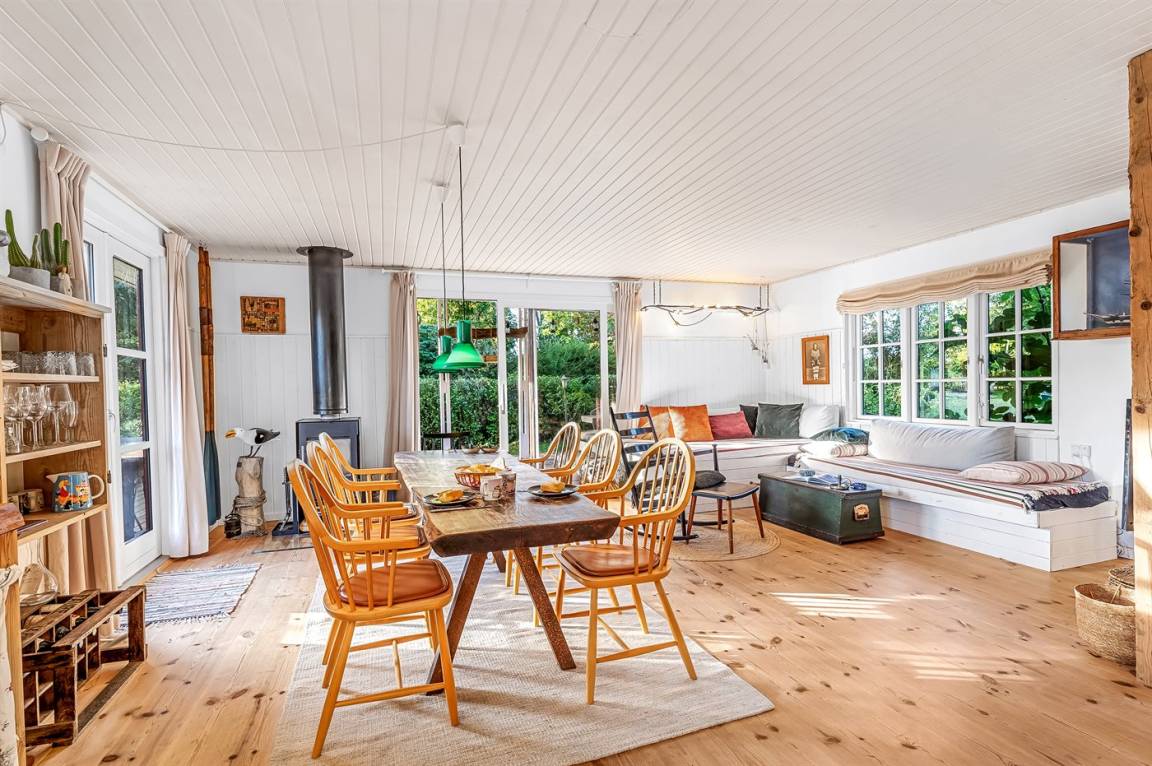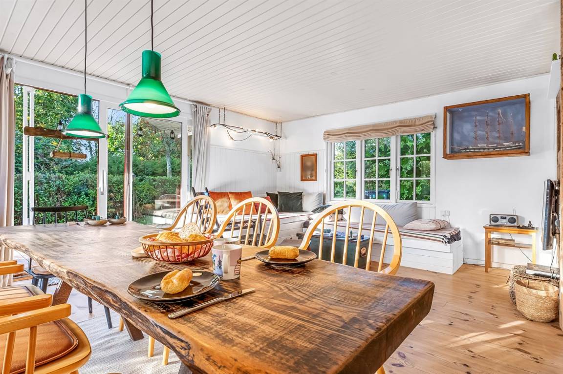 Das Haus ist leicht und gemütlich eingerichtet, mit kleinen feinen Details überall. Vom Wohnzimmer aus könnt ihr direkt auf die überdachte Holzterrasse gehen und die Sonne auf der Sonnenliege oder den Gartenmöbeln genießen. Wenn es Zeit zum Kochen ist, könnt ihr das auf dem Holzkohlegrill tun. Das Haus liegt auf einem Naturgrundstück in der Nähe von Grønsund, wo es viel Platz zum Spielen und Entspannen gibt. Auf dem schönen Gartengrundstück gibt es außerdem eine Windschutzhütte und eine gemütliche Feuerstelle.