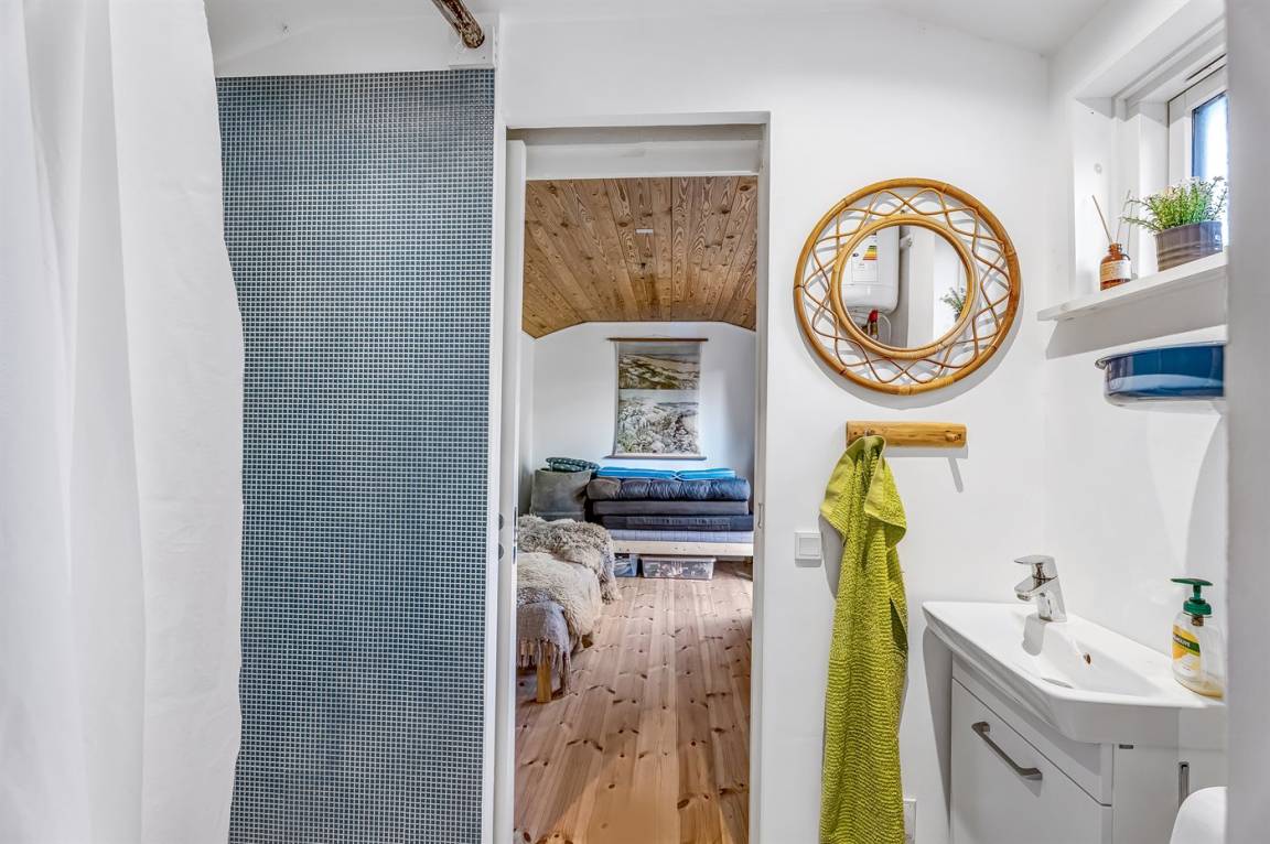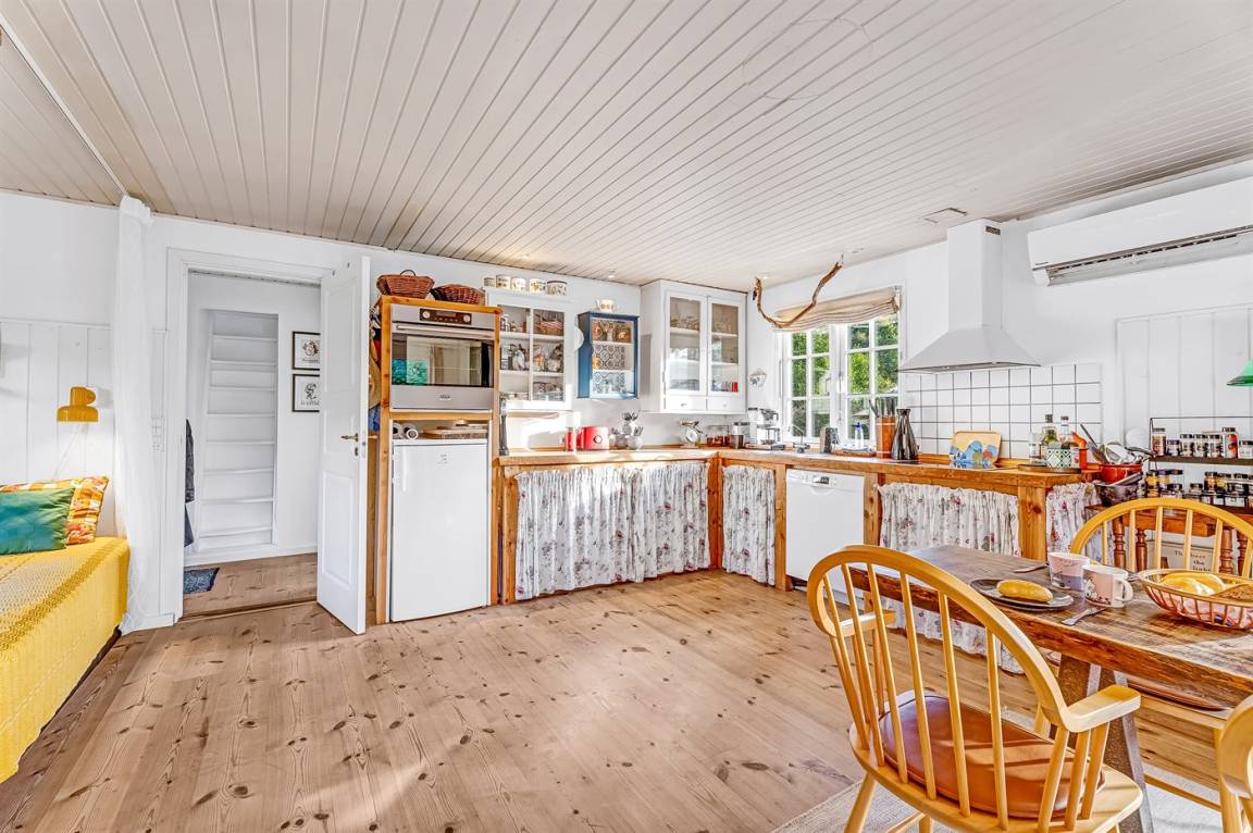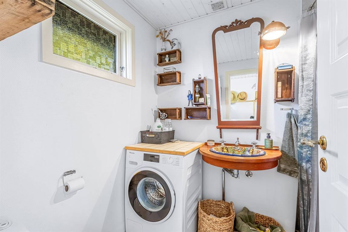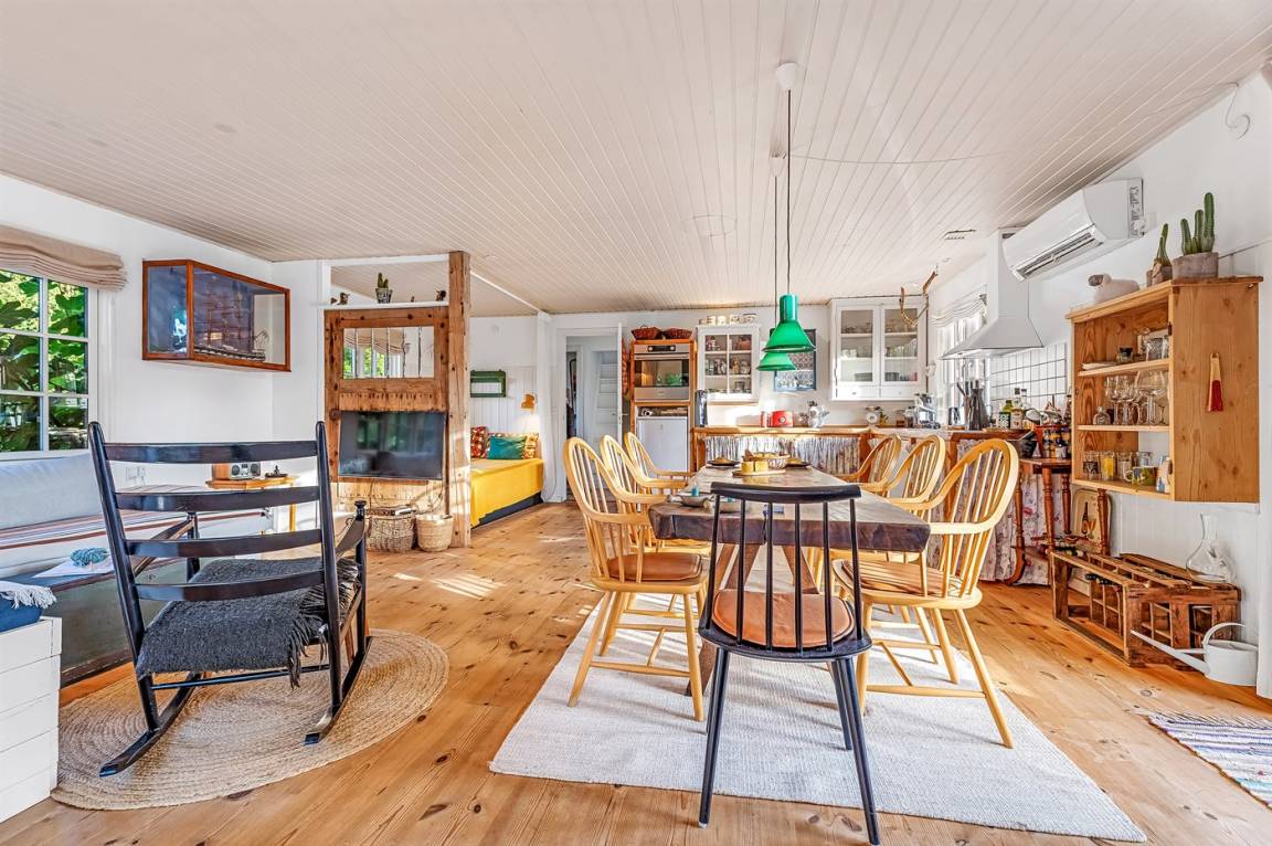 Das Haus ist leicht und gemütlich eingerichtet, mit kleinen feinen Details überall. Vom Wohnzimmer aus könnt ihr direkt auf die überdachte Holzterrasse gehen und die Sonne auf der Sonnenliege oder den Gartenmöbeln genießen. Wenn es Zeit zum Kochen ist, könnt ihr das auf dem Holzkohlegrill tun. Das Haus liegt auf einem Naturgrundstück in der Nähe von Grønsund, wo es viel Platz zum Spielen und Entspannen gibt. Auf dem schönen Gartengrundstück gibt es außerdem eine Windschutzhütte und eine gemütliche Feuerstelle.