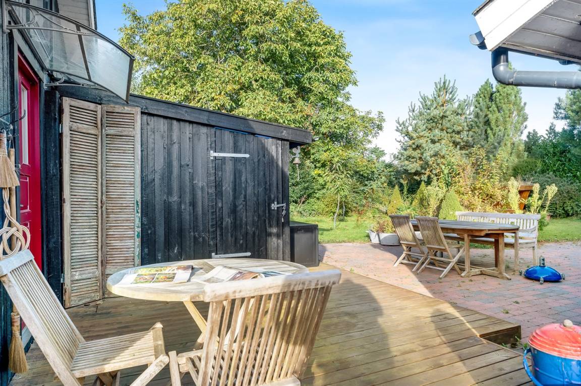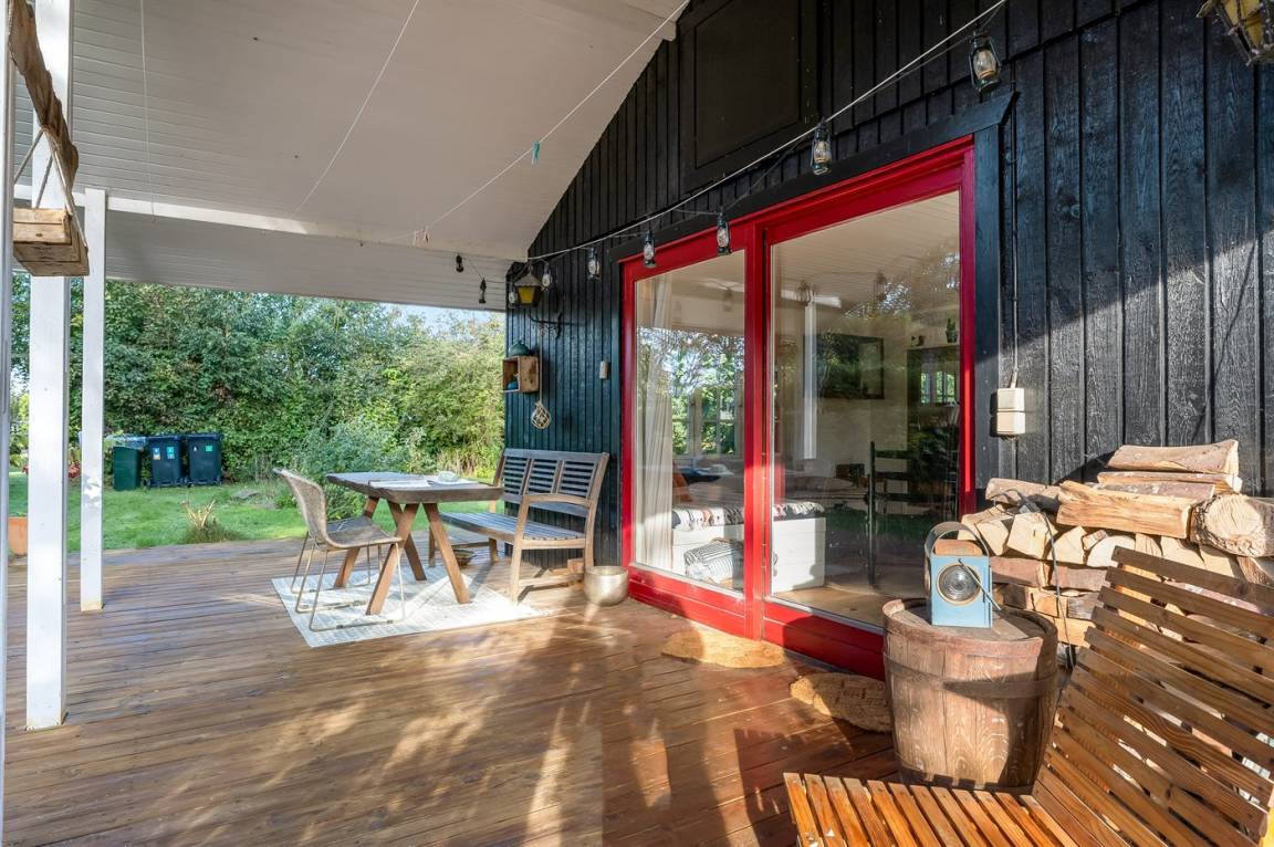 DraußenDie Ferienunterkunft liegt auf einem 909 m² großen Gartengrundstück. Die Entfernung zum Meer beträgt 400 m. Es gibt einen Badesteg in der Nähe. Die nächste Einkaufsmöglichkeit liegt 1500 m entfernt. Es steht ein offenes Terrassenareal zur Verfügung. Außerdem gibt es überdachte Terrasse.Lagerfeuerstelle. Windschutzhütte. Es steht ein Grill zur Verfügung. Parkplatz auf dem Grundstück.