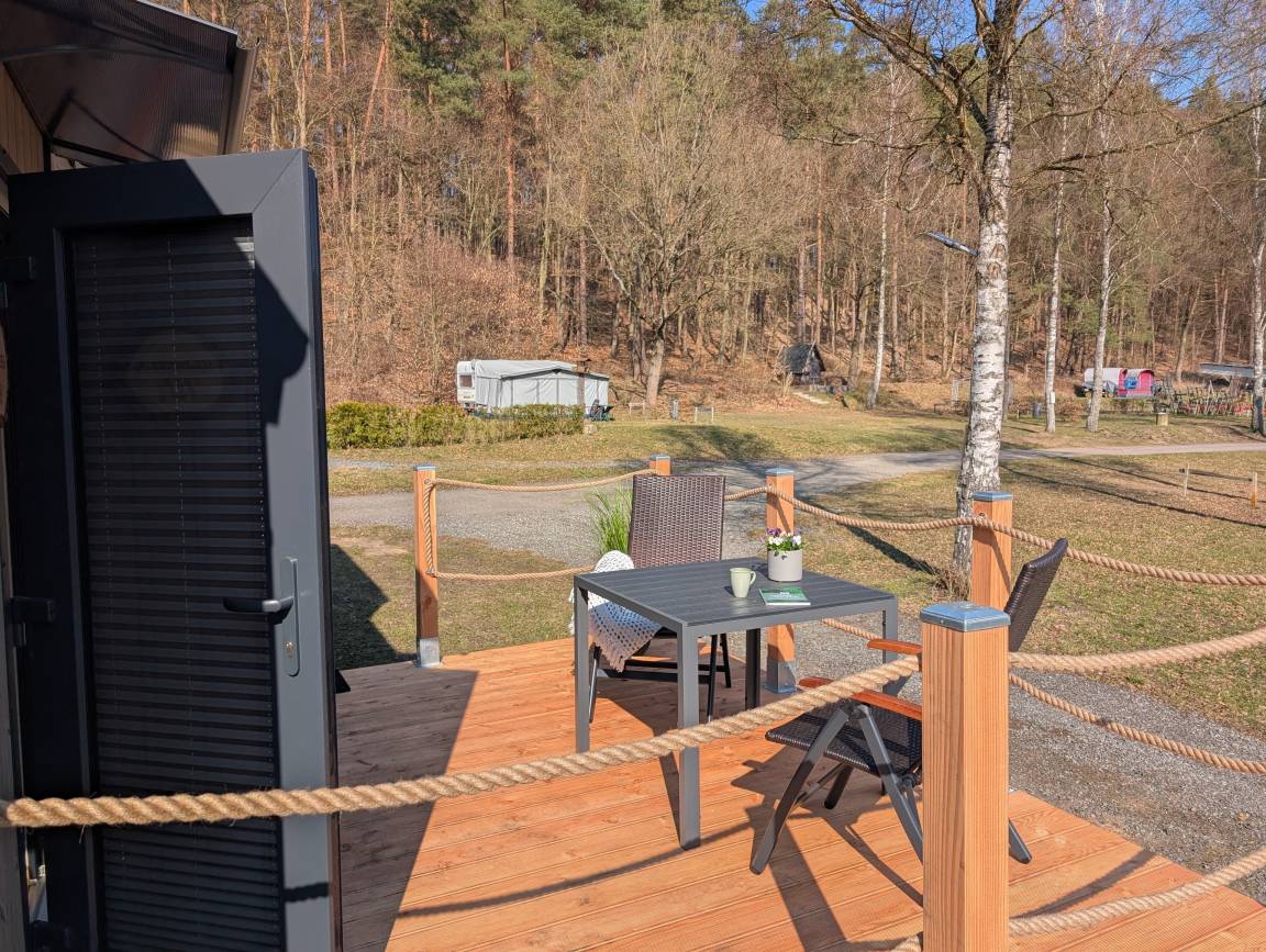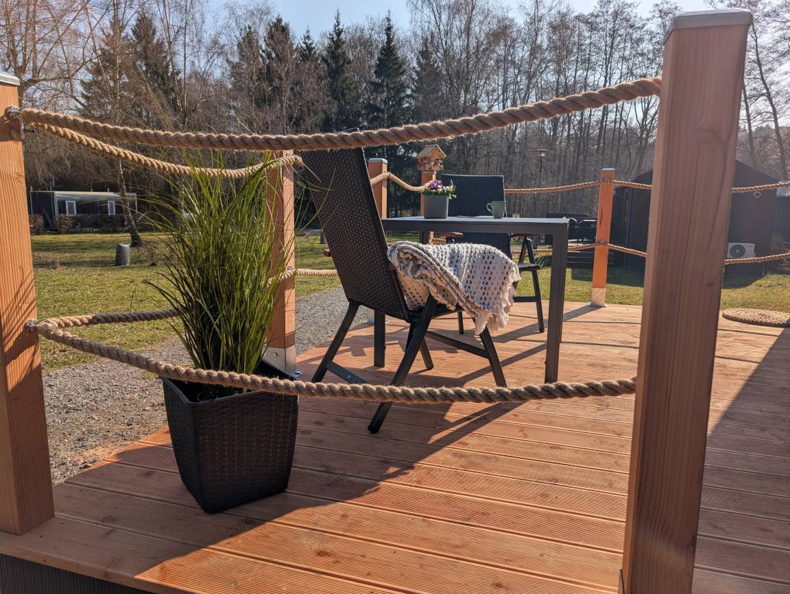 Tritt hinaus auf die 10 m² große Terrasse. Das ist dein Platz für den ersten Kaffee am Morgen, das spannende Buch am Nachmittag oder den gemütlichen Grillabend. Und wenn die Nacht hereinbricht, erlebst du hier ein Spektakel, das in der Stadt längst verloren gegangen ist: Einen Sternenhimmel so klar und unendlich, dass er dir den Atem raubt. Und wenn es still ist, kannst du den Tieren des Waldes lauschen.