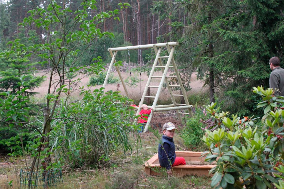 Die großzügige überdachte Terrasse im Eingangsbereich bietet im Sommer ein lauschiges Plätzchen mit Blick ins Grüne und im Winter einen willkommenen trockenen Zugang zum Haus. Das großzügige Waldgrundstück steht für Ihre Erholung bereit. Ob ein ungestörtes Sonnenbad, ein gemütlicher Grillabend oder ein Platz zum Spielen für die Kinder: Alles ist hier möglich. Auch Vierbeiner fühlen sich auf dem eingezäunten Grundstück (Maschendraht / Jägerzaun) pudelwohl.