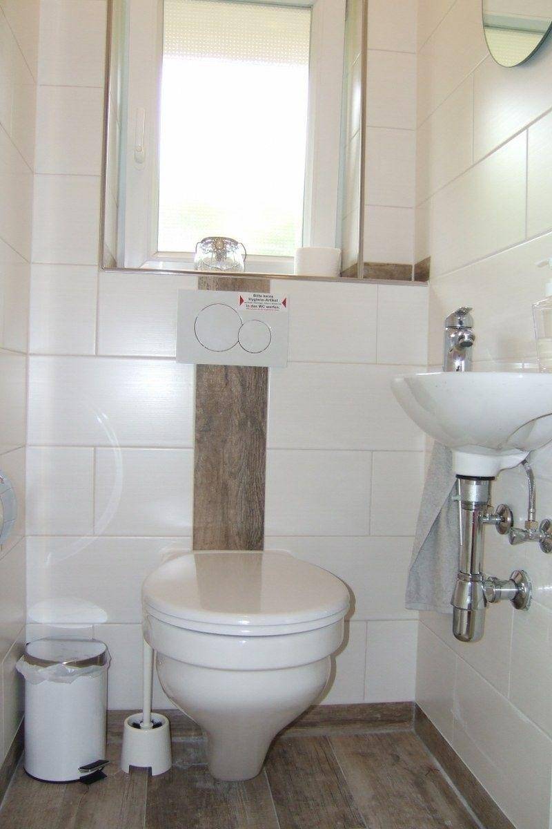 Im Obergeschoss befindet sich ein zusätzliches kleines Badezimmer mit Dusche, Waschbecken und Toilette.