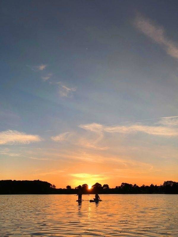 Es gibt zwei Schlafzimmer. Das Hauptschlafzimmer mit Doppelbett (180x200cm) und auch das kleinere Schlafzimmer mit zwei Einzelbetten (90x200cm) bestechen durch den Blick ins Grüne.