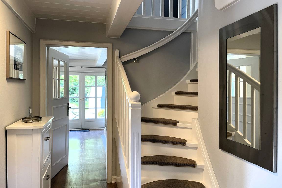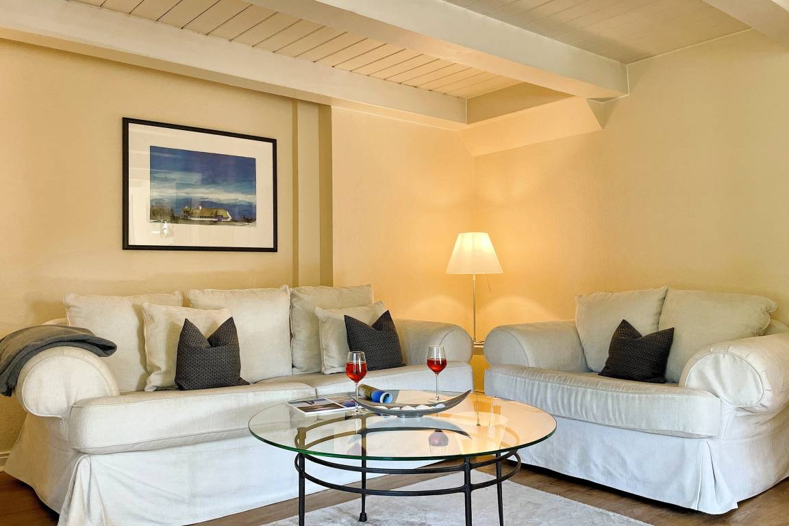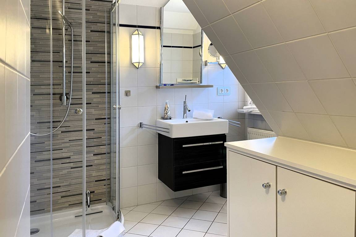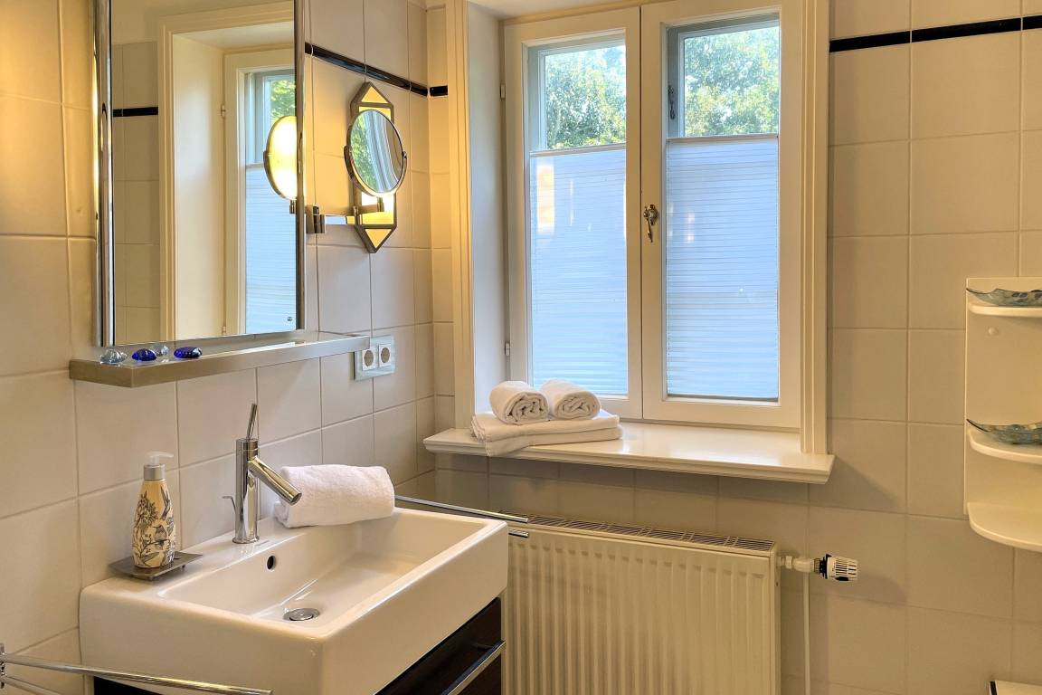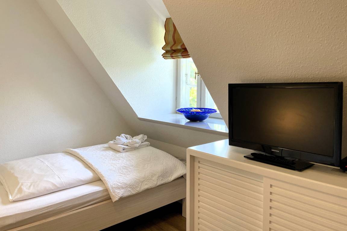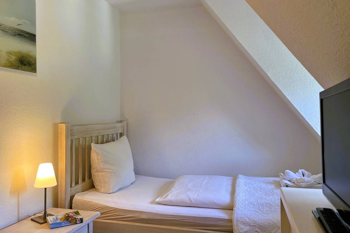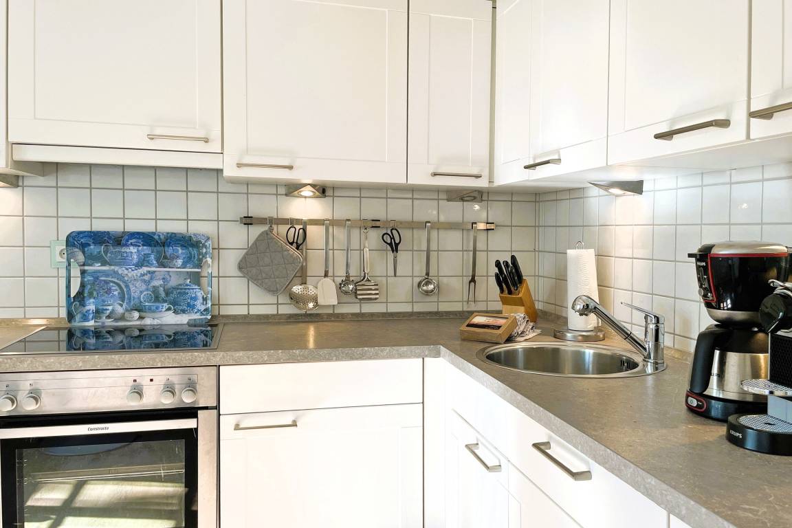Süderende- erleben Sie friesische Gastfreundschaft in einem echten Friesendorf und unserer Haushälfte "Süderhüs". Unsere linke Haushälfte Süderhüs in Süderende erstreckt sich mit 95 m über 2 Etagen und bietet 5 Personen Platz für herrliche Urlaubstage. Betreten Sie Ihr Urlaubsdomizil und fühlen Sie sich sogleich Willkommen in der ruhig gelegenen Haushälfte, die viel Gemütlichkeit und Behaglichkeit ausstrahlt. Liebevoll eingerichtet und harmonisch aufeinander abgestimmt finden Sie im Erdgeschoss einen einladenden Wohn- und Essbereich mit großem Flachbild- TV, DVD-Player, Telefon, einer bequemen Sitzgruppe, WLAN und Stereoanlage. An das Wohnzimmer angrenzend befindet sich die gut ausgestattete, helle Küche mit Cerankochfeld und Backofen, Geschirrspüler, Mikrowelle, Kühlschrank mit Gefrierfach und vielem mehr. Ein kleiner Essplatz lädt hier um ersten Kaffee am Morgen ein. Des Weiteren liegt im Erdgeschoss ein kleines Vollbad mit Dusche und Fußbodenheizung. Vom Flur aus gelangen Sie über eine Treppe ins erste Obergeschoß mit seinen drei Schlafzimmern und einem zweiten Vollbad mit Dusche. Die Schlafräume unterteilen sich in ein Zimmer mit Doppelbett (180x200) und Kleiderschrank, ein weiteres Schlafzimmer mit zwei Einzelbetten (90x 200cm) und Kommode sowie ein Schlafzimmer mit Einzelbett (100 x200 cm)und einem 2. Flachbild-TV (Internet). Sie werden sich nicht nur im Haus, sondern auch im großzügig angelegten Garten, welcher mit seiner Süd-Westausrichtung den ganzen Tag Sonnenstunden ermöglichen kann, sehr wohl fühlen. Genießen Sie Kaffee und Kuchen auf der schönen Terrasse, entspannen Sie mit einem guten Buch in dem romantischen Strandkorb oder sonnen Sie sich auf den Liegen im blickgeschützten Garten.