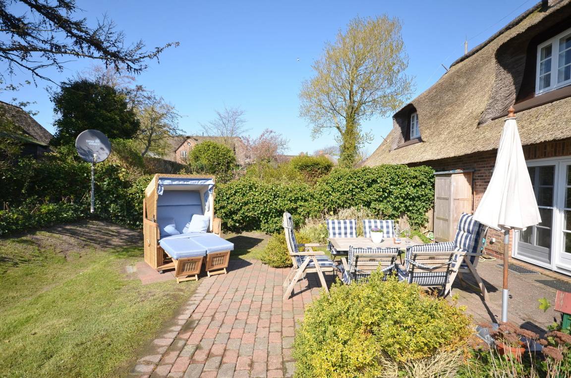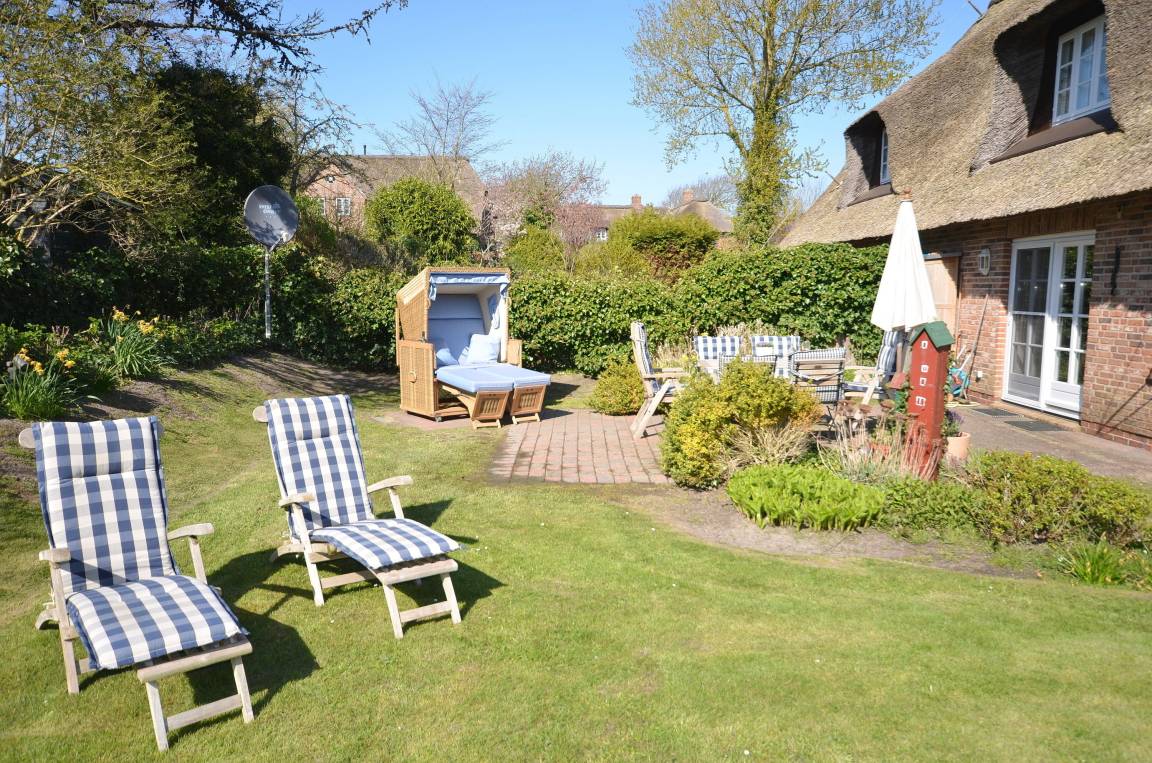 Ein wunderschöner und gepflegter Garten sowie ein gemütliches Friesenhaus unter Reet heißen unsere Gäste in Süderende willkommen!