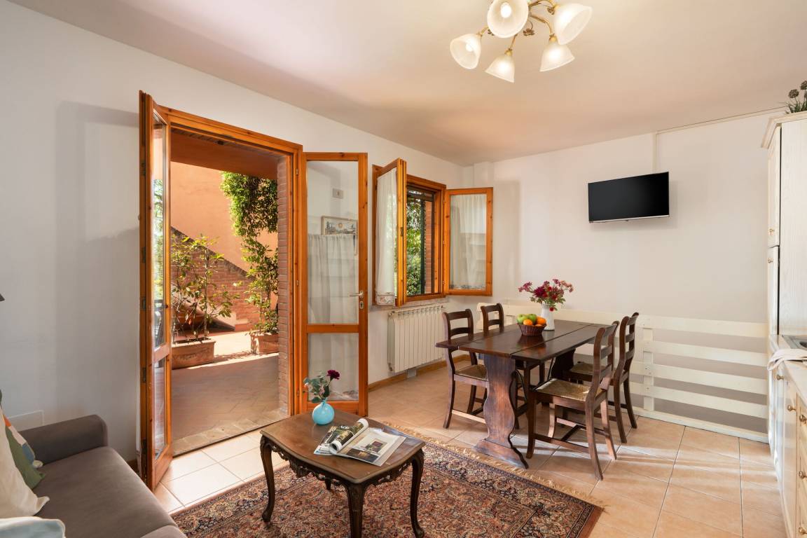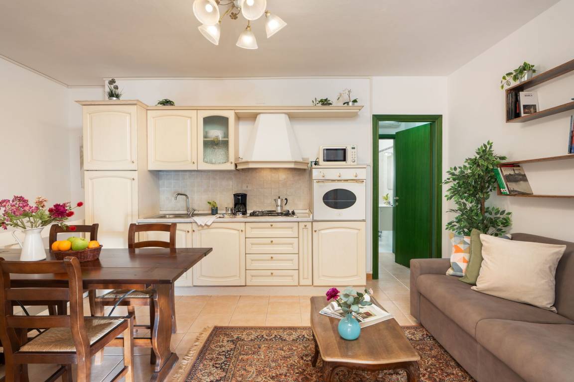 Wohnküche: gut ausgestattete Küche, Esstisch (Personen: 6), Spülmaschine, Kühlschrank, Tiefkühler, Mikrowelle, Ofen, Amerikanische Kaffeemaschine, Doppel-Schlafsofa, WiFi Internet, Klimaanlage, Satelliten-TV, Ausgang auf den Garten.