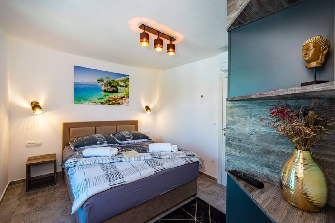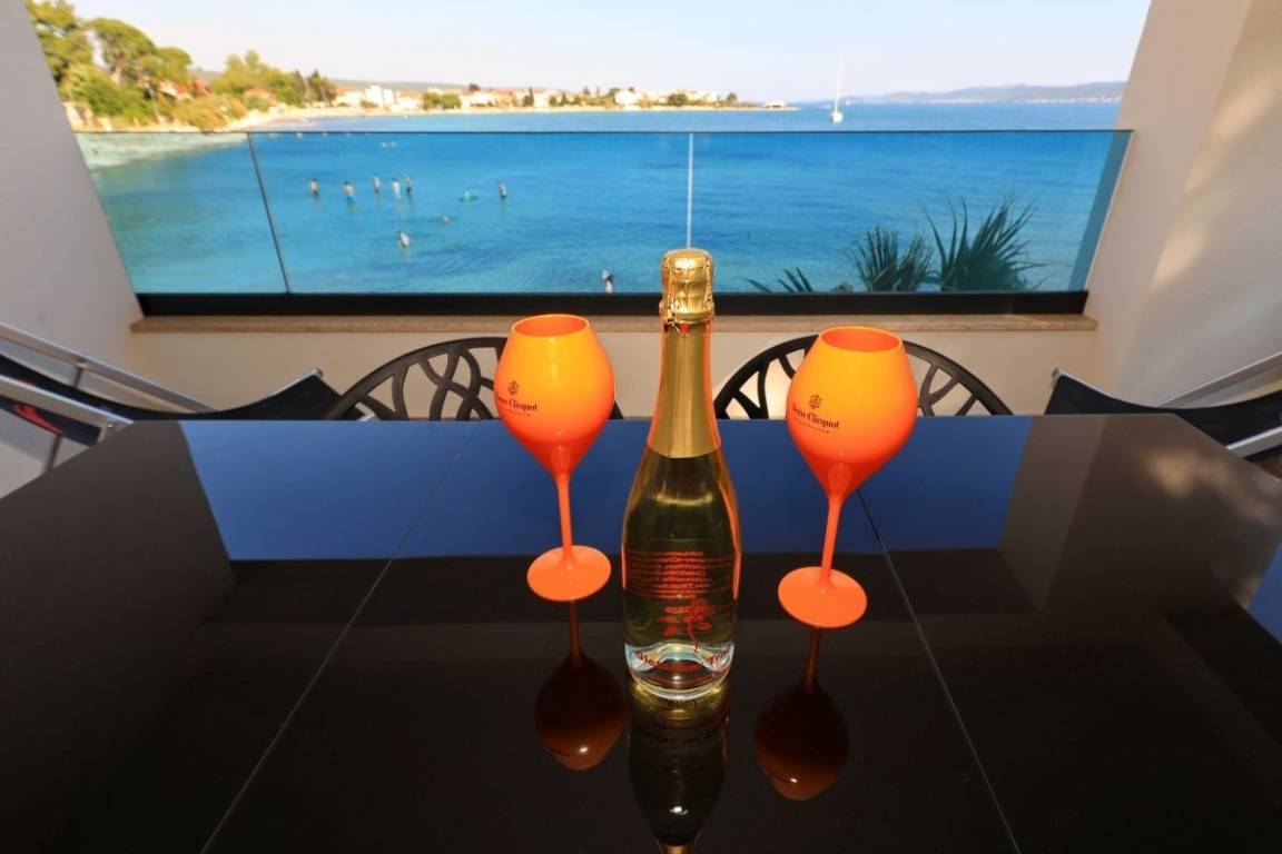 Designer Apartment mit Designerausstattung von Natuzzi, mit Terrasse direkt am Meer am feinkörnigem Strand, welcher flach abfallend ist.