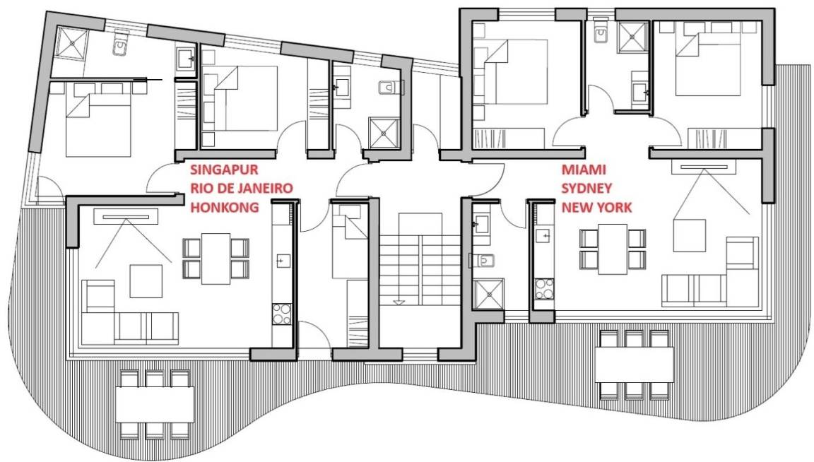 Designer Apartment mit Designerausstattung von Natuzzi, mit Terrasse direkt am Meer am feinkörnigem Strand, welcher flach abfallend ist.