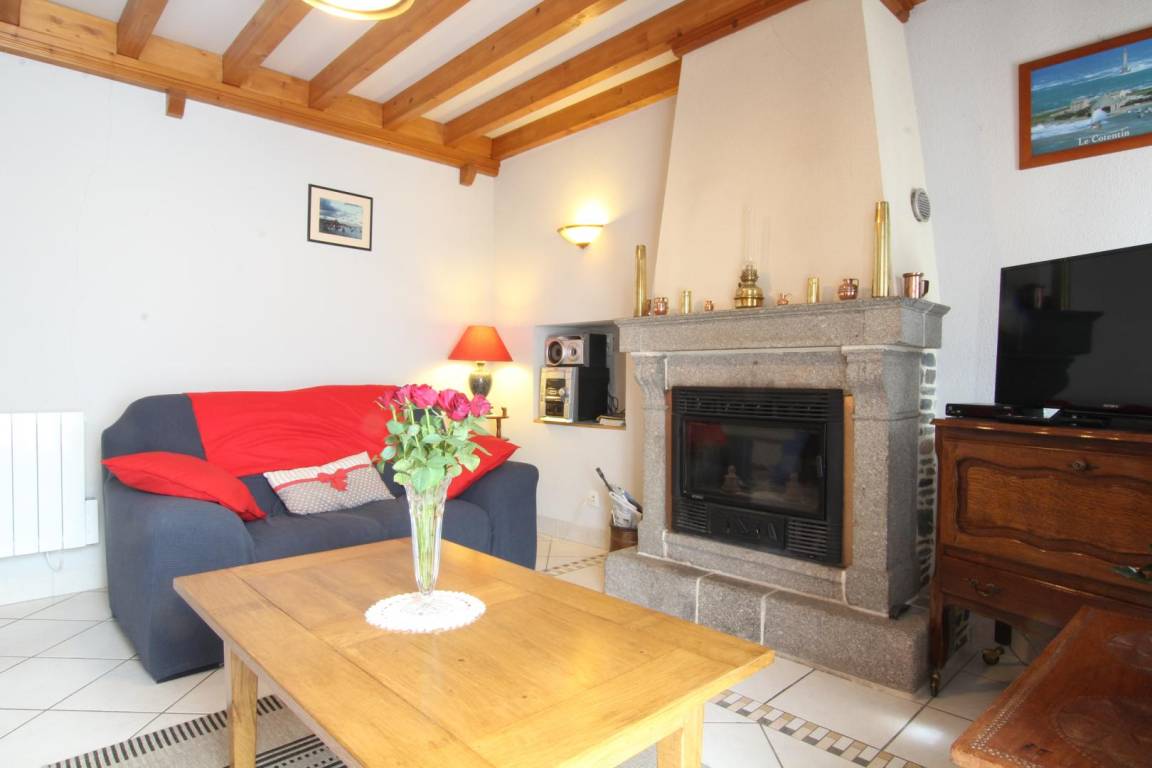 Freistehendes Haus. Erdgeschoss: Wohnzimmer mit Kamin (TV, Internet, Stereoanlage). Einbauküche (Herd mit Cerankochfeld, Mikrowelle, Geschirrspüler, Kapsel- und Filterkaffeemaschine, Gefrierfach). WC. Waschküche (Waschmaschine und Trockner). Obergeschoss: Schlafzimmer 1: 1 Doppelbett (140 x 190 cm). Schlafzimmer 2: 2 Einzelbetten (90 x 190 cm). Duschbad. WC. Elektrische Heizung (gegen Gebühr). Brennholz (gegen Gebühr). Bettwäsche mietbar. Reinigungsservice optional. Haustiere erlaubt (gegen Gebühr). Babyausstattung vorhanden. Privater, umzäunter Garten. Innenhof. 2 Terrassen. Picknicktisch. Sonnenliegen. Grill. Gartenmöbel.